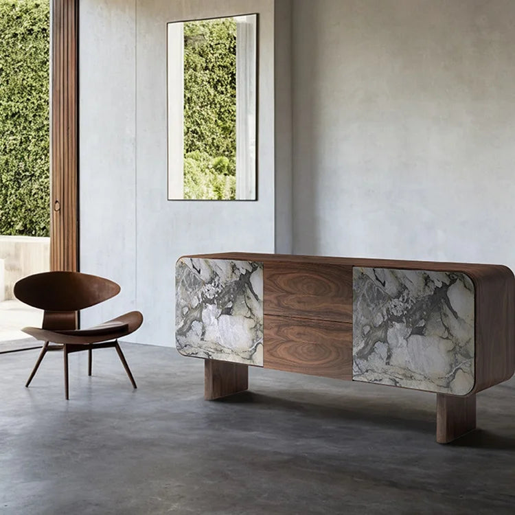 Architectural Natural Marble and Solid Wood Sideboard for High-End Commercial Projects