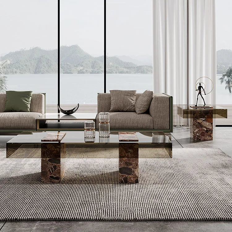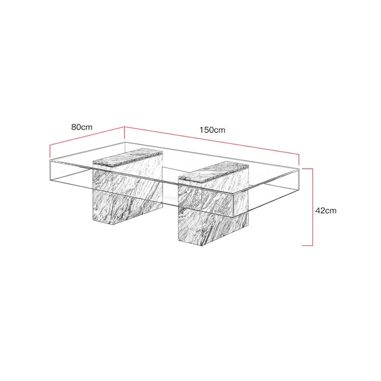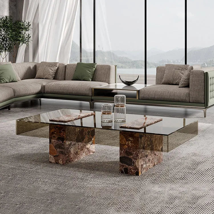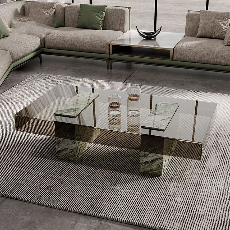 Architectural Tempered Glass Coffee Table with Solid Natural Marble Base