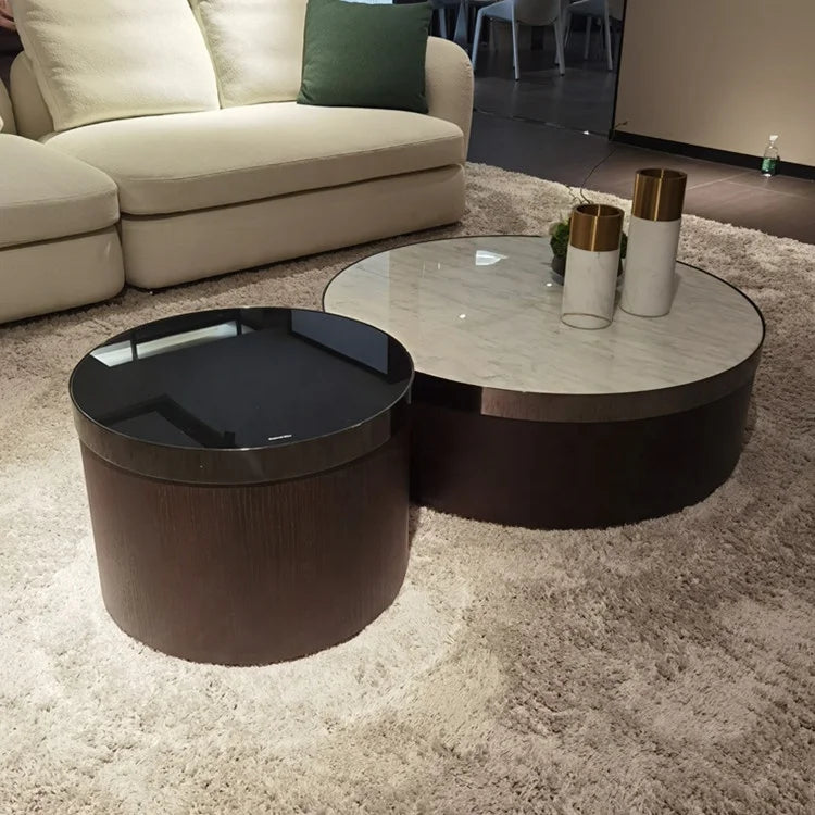 Modern Round Marble and Wood Project Grade Commercial Coffee Table