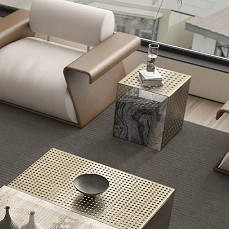 Home Shop Coffee Tables 1 Natural Marble Architectural Side Table with Polished Stainless Steel Base