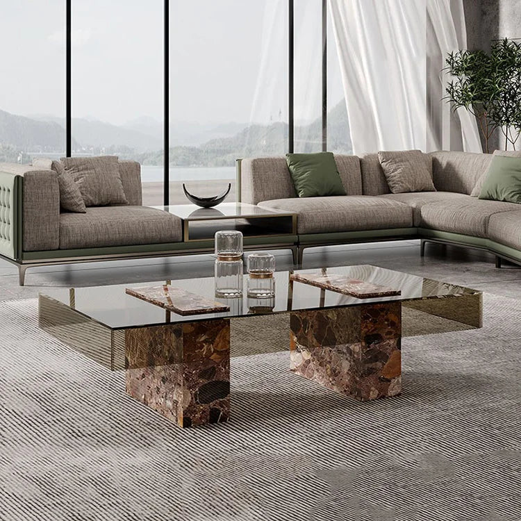 Premium Natural Marble and Tempered Glass Commercial Project Coffee Table