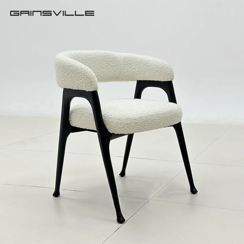Minimalist Bouclé Fabric Commercial Dining Chair with Solid Timber Legs
