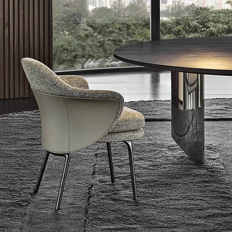 Minimalist Project Grade Leather and Fabric Upholstered Architectural Dining Chair