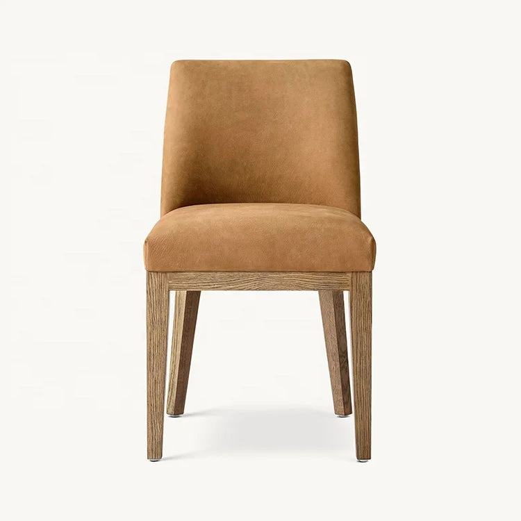 Premium Genuine Leather Dining Chair with Solid Wood Frame for Commercial Fit-outs