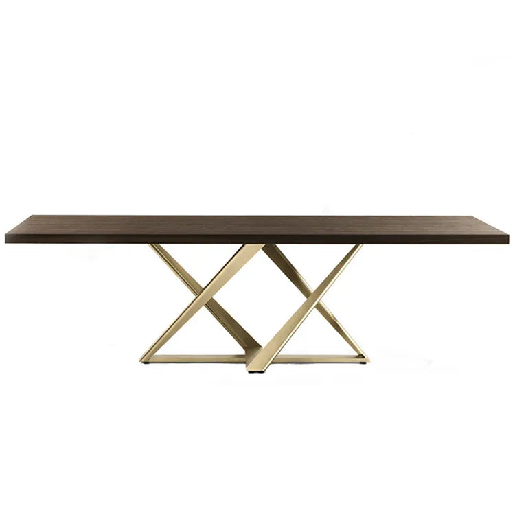 This project-grade dining table features a sophisticated live edge wood veneer surface paired with a durable champagne gold stainless steel X-frame base. Engineered for high-end hospitality and retail environments, the custom commercial joinery offers exceptional scalability for large-scale commercial projects and luxury residential fit-outs. The robust construction ensures long-term performance in high-traffic retail fit-out furniture applications while maintaining a premium architectural aesthetic. These bespoke pieces are designed to meet the rigorous compliance standards of modern commercial furniture environments without compromising on contemporary design.