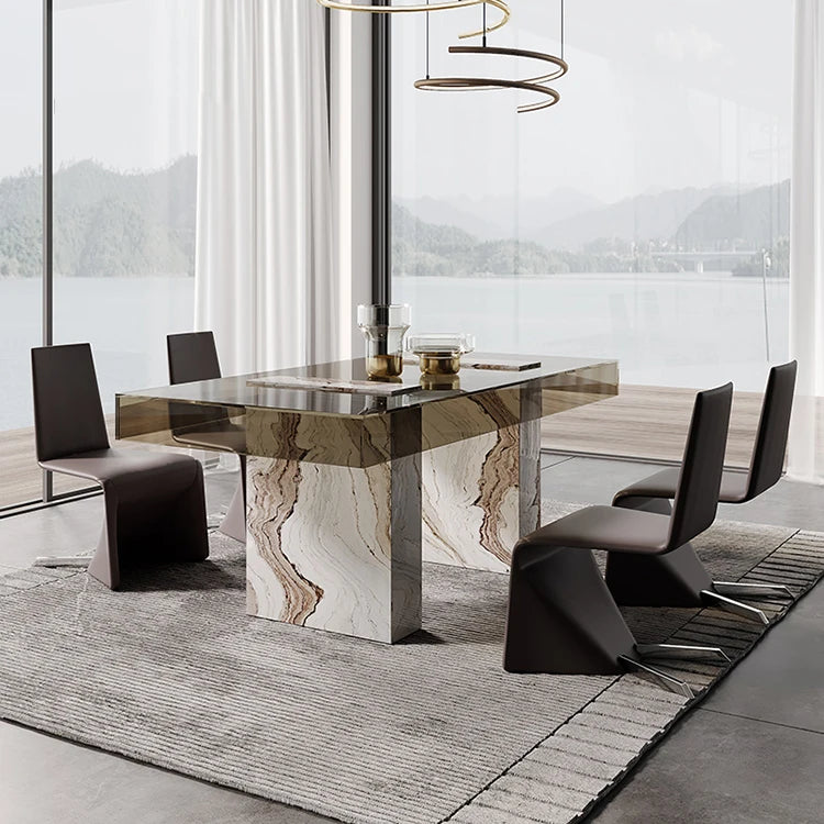 Architectural Rectangular Dining Table with Marble Base for Commercial Fit-Outs