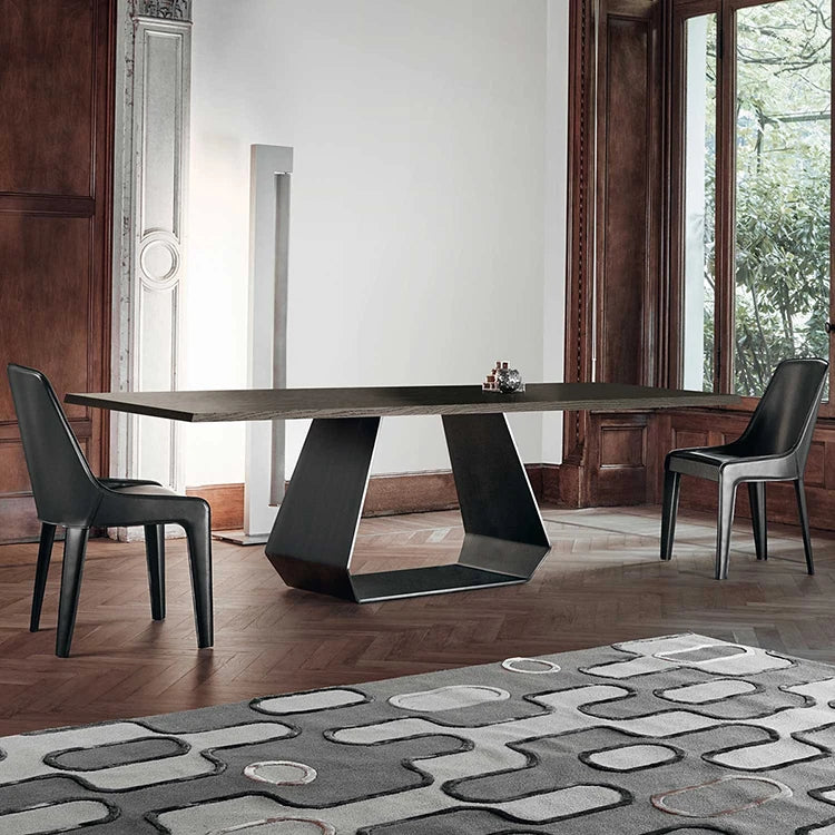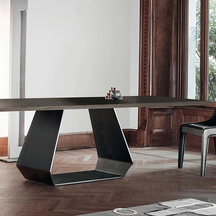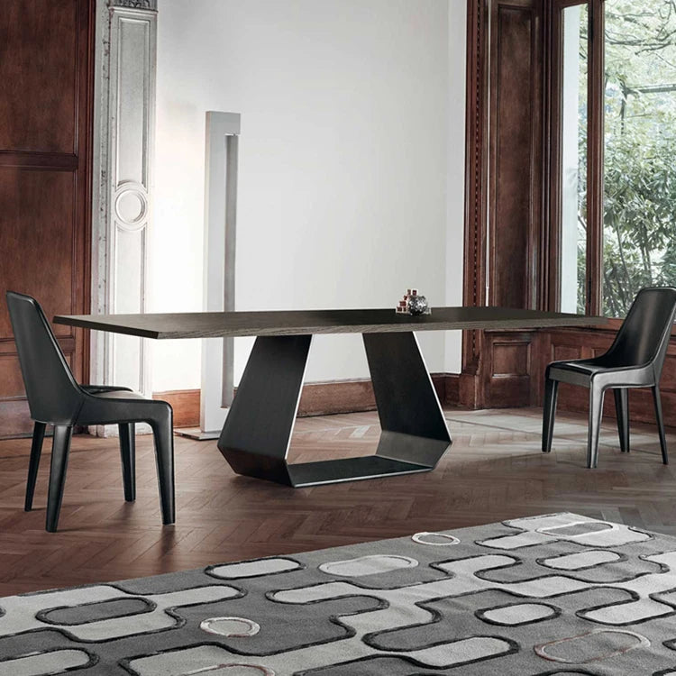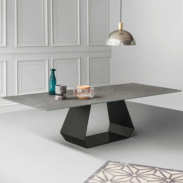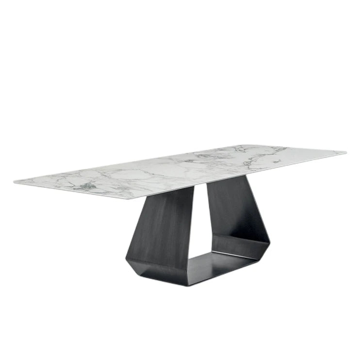Architectural Rectangular Marble Dining Table with Precision Grade Stainless Steel Base