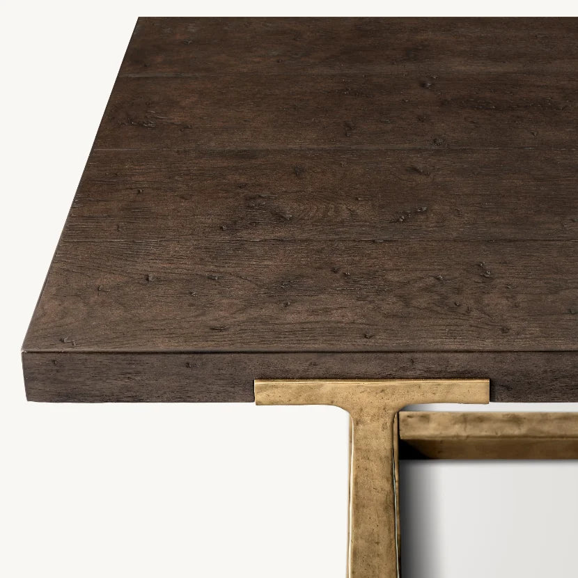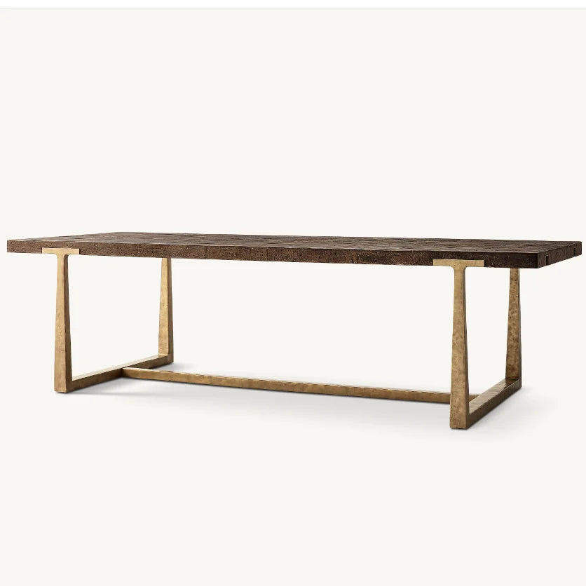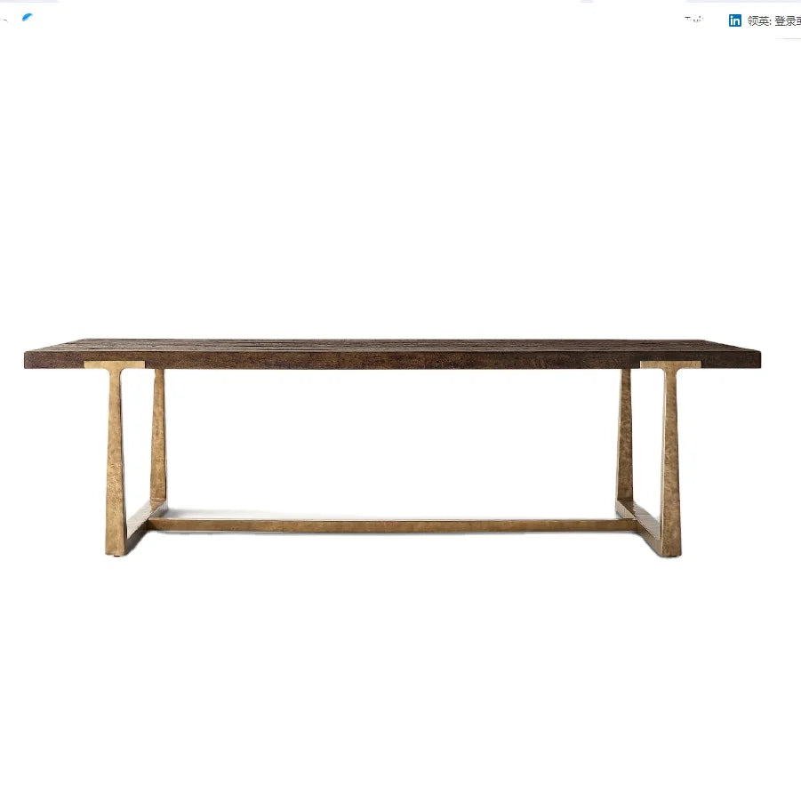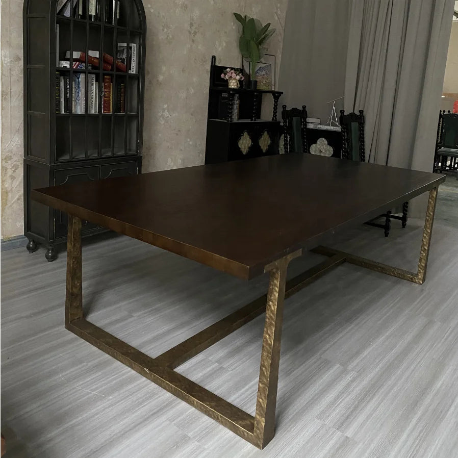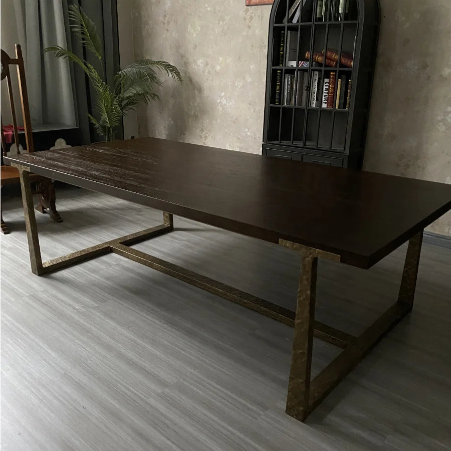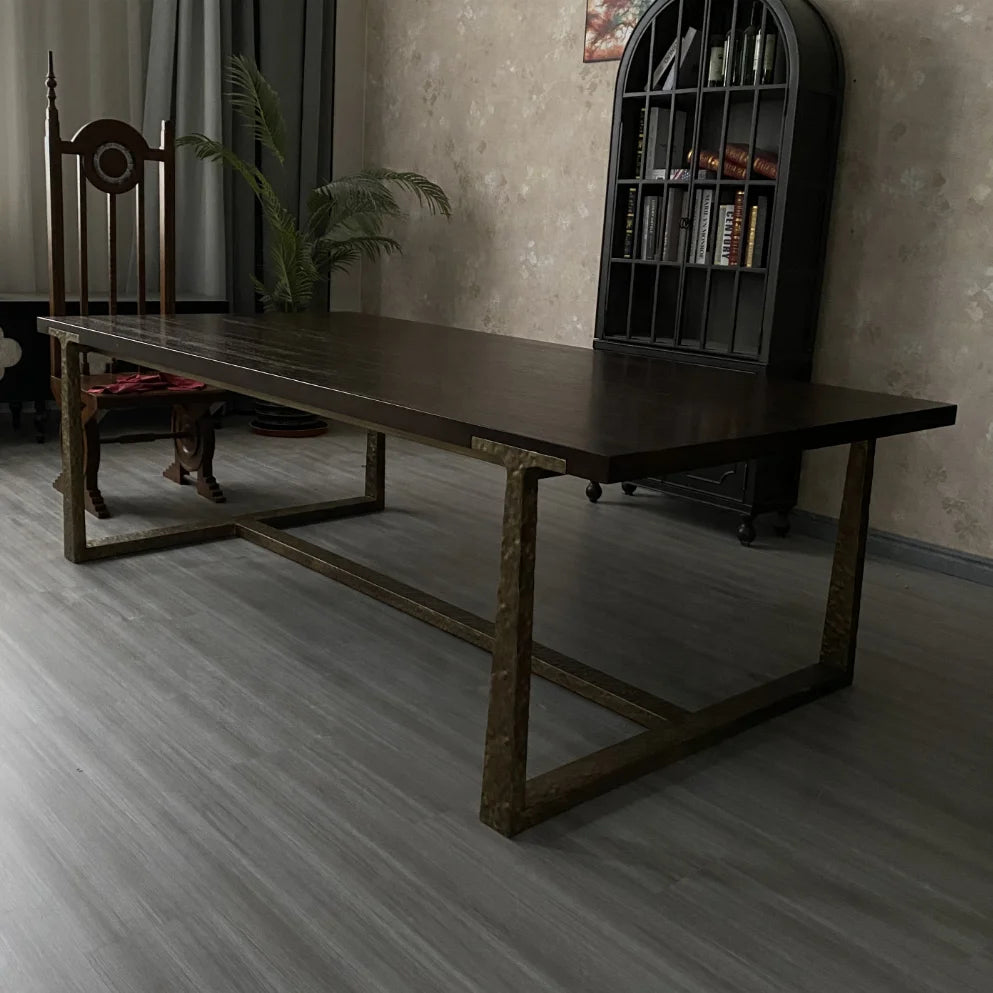 Architectural Solid Oak Dining Table with Custom Metal Frame