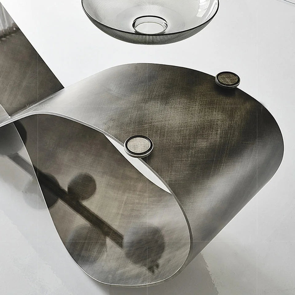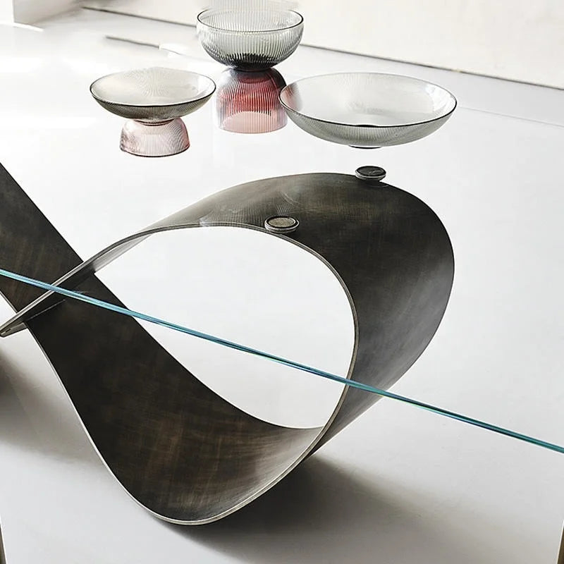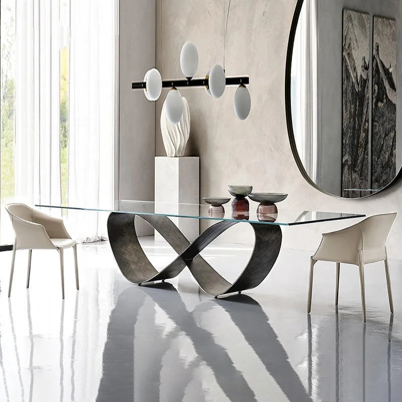 Architectural Tempered Glass Dining Table with High-Specification Stainless Steel Base