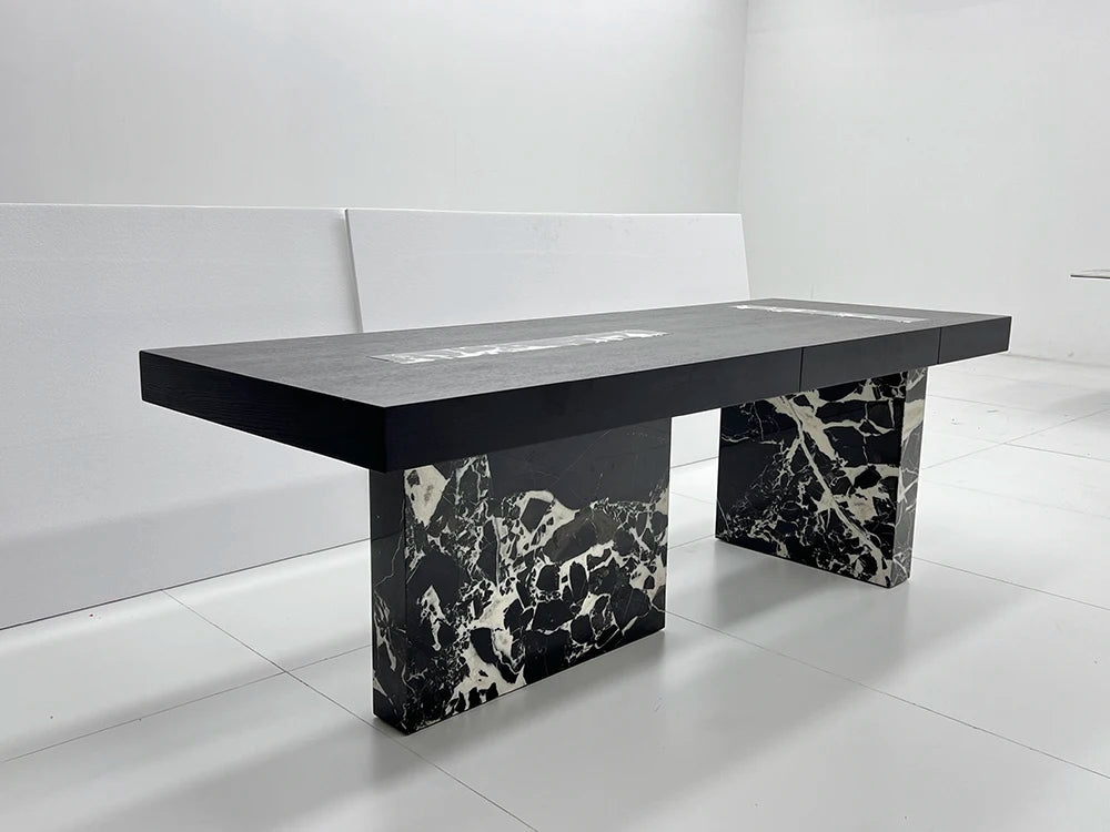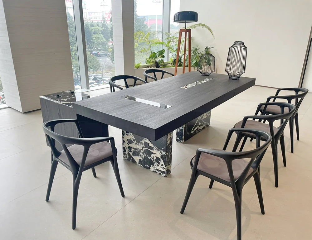 This project-grade furniture piece features a sophisticated combination of natural marble and premium timber, engineered specifically for high-end hospitality and retail environments. Designed for durability and scalability in large-scale commercial projects, the table serves as a focal point for executive boardrooms or luxury dining fit-outs. Our custom commercial joinery ensures each unit meets rigorous compliance standards while offering the flexibility required for bespoke architectural specifications. This executive table provides a robust solution for retail fit-out furniture requirements where aesthetic excellence and structural integrity are paramount.