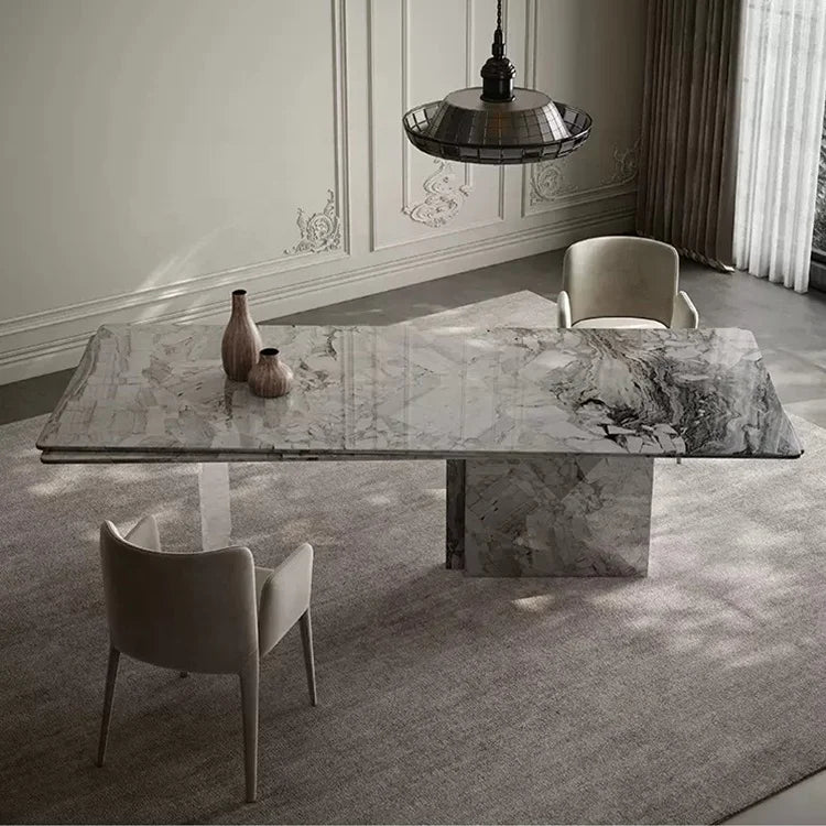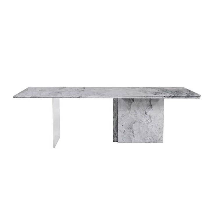 Premium Natural Marble Dining Table with Architectural Acrylic Support Legs