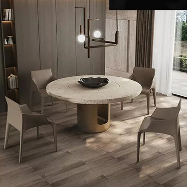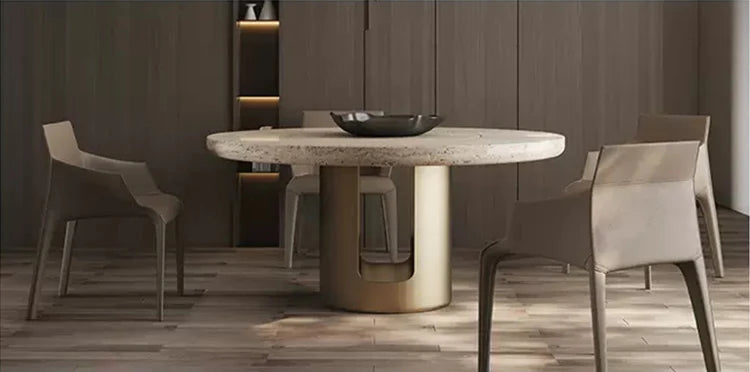 Premium Round Marble Dining Table with Architectural Stainless Steel Base