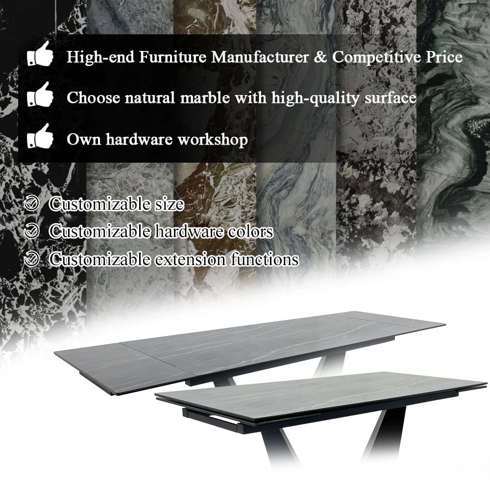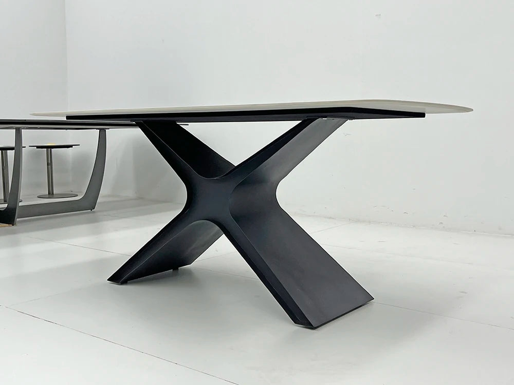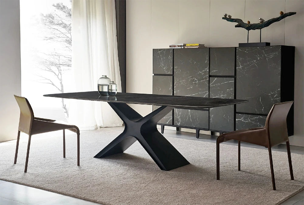 This architectural-grade dining table features a high-performance sintered stone surface engineered for durability in high-traffic hospitality and retail environments. Designed for large-scale commercial projects, the robust metal support system ensures long-term stability and compliance with rigorous project-grade standards. We offer custom manufacturing capabilities to align with specific interior designer specifications, providing a sophisticated aesthetic for high-end residential and commercial fit-outs. Its non-porous ceramic surface provides exceptional resistance to heat and scratching, making it an ideal choice for luxury project-grade applications.