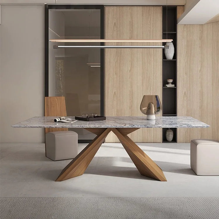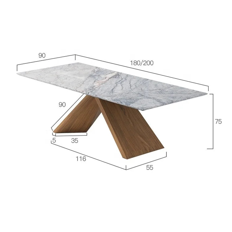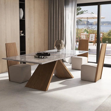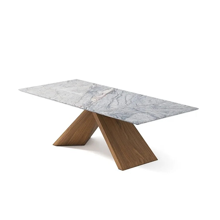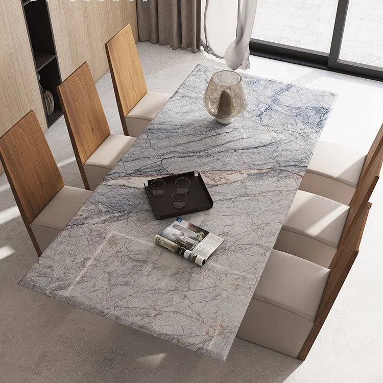 Rectangular Natural Marble Dining Table with Premium Solid Wooden Base