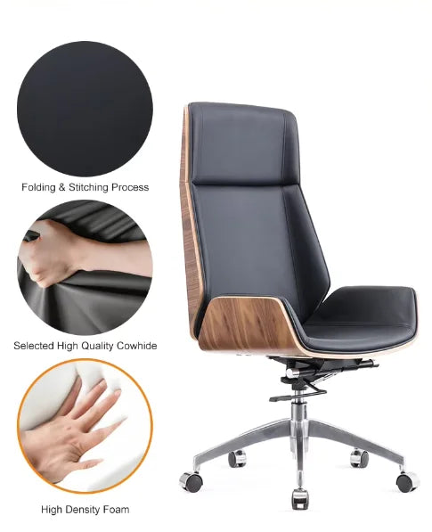 Ergonomic Bentwood Shell Genuine Leather High Back Executive Office Chair