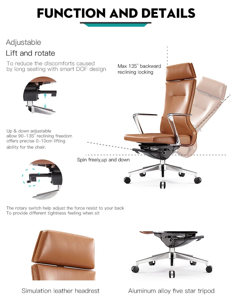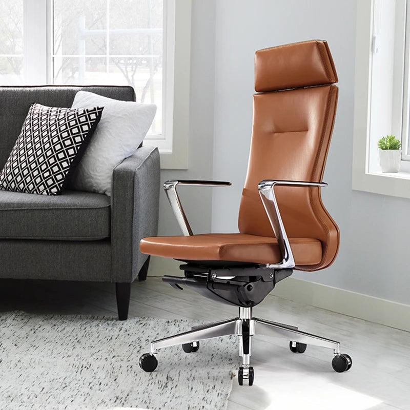 Engineered for high-end commercial environments, this project-grade executive seating solution features a precision-crafted aluminum frame and premium genuine leather upholstery for long-term durability in retail fit-out furniture applications. The ergonomic high-back design incorporates a multifunctional tilting mechanism and integrated lumbar support, ensuring superior comfort and compliance within large-scale commercial projects and sophisticated hospitality settings. Designed to meet the rigorous demands of custom commercial joinery and interior designer projects, the chair offers scalable manufacturing options tailored to specific architectural requirements and professional office standards. This sleek, architectural swivel unit seamlessly integrates into modern retail brands and corporate workspaces, providing a refined aesthetic that balances performance with high-end residential furniture quality.