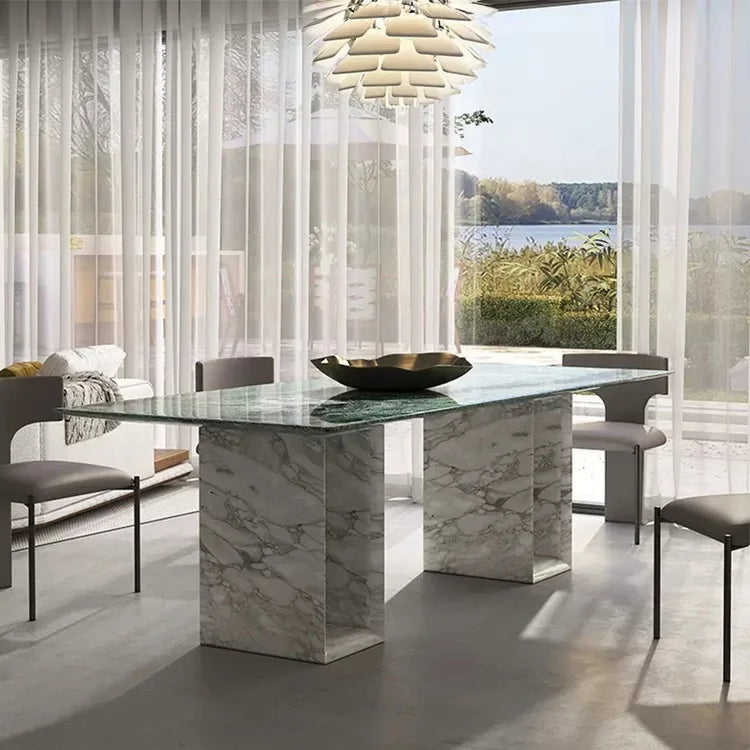 Architectural Emerald Marble Dining Table for High-End Commercial Projects