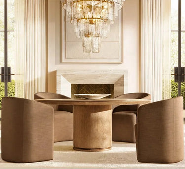 Architectural Grade Round Wood Veneer Dining Table for Large Scale Projects