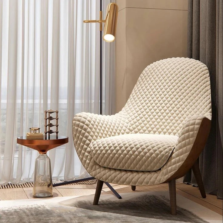 Architectural High-Back Lounge Chair with Integrated Timber Side Table