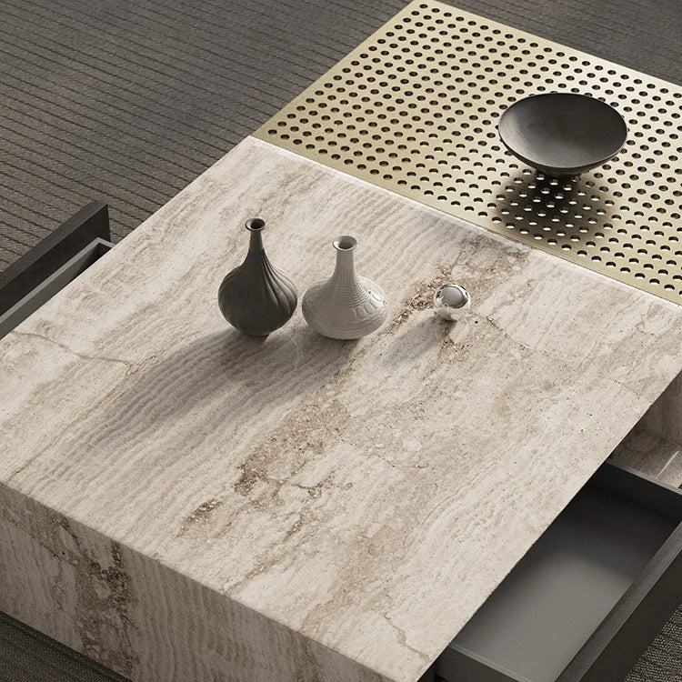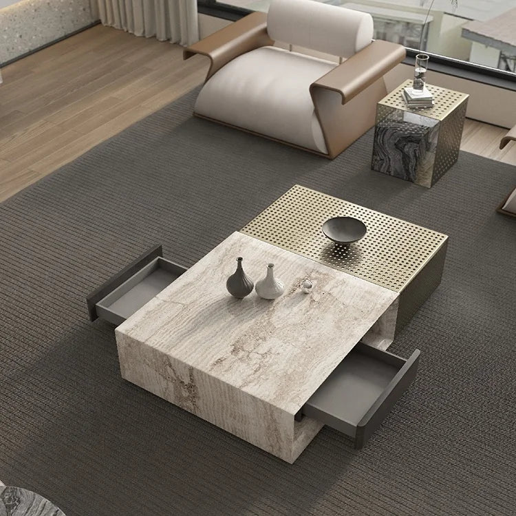 Architectural Natural Marble and Stainless Steel Commercial Grade Center Table