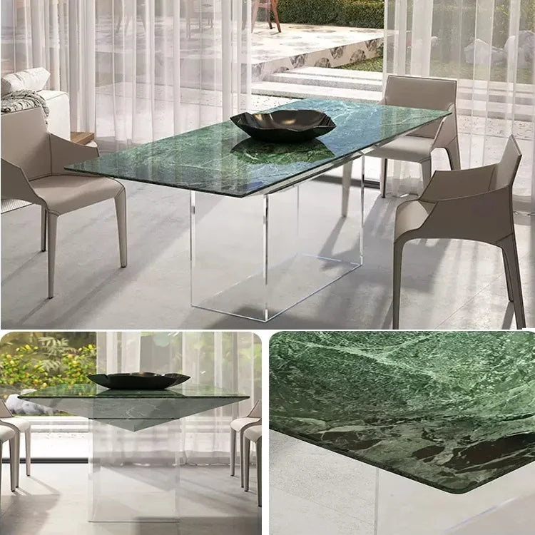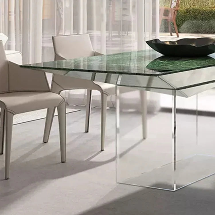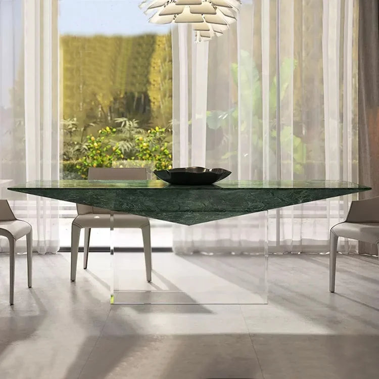 Architectural Natural Marble Dining Table with Sculptural Acrylic Base