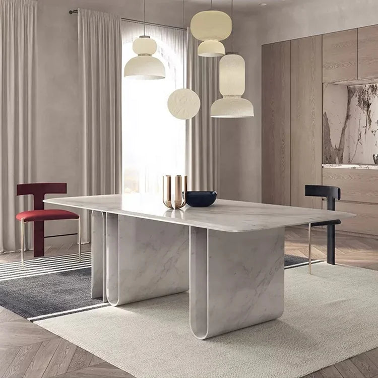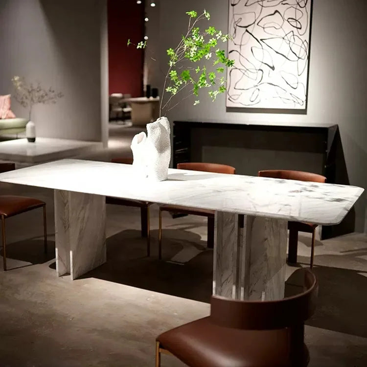 Architectural Rectangle Natural Marble Dining Table for Large Scale Commercial Projects