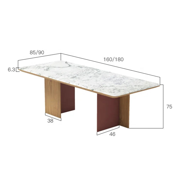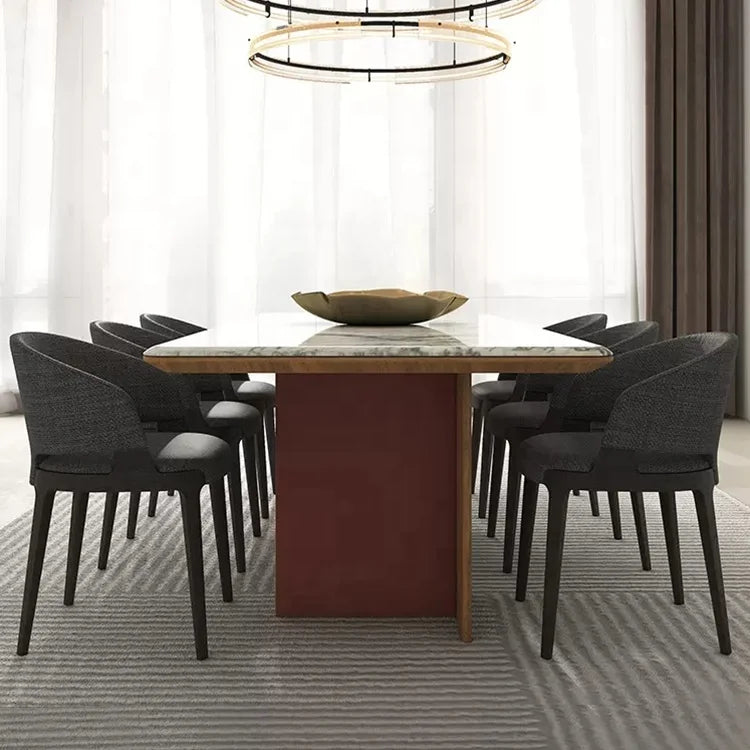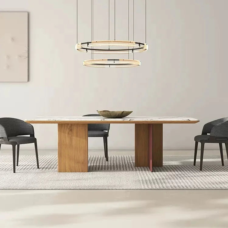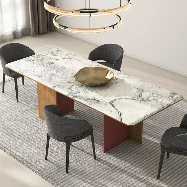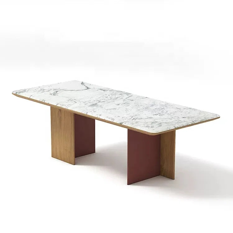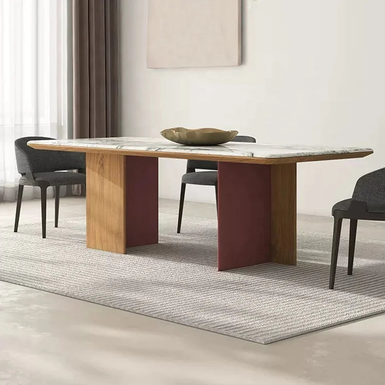 Architectural Rectangle Natural Marble Dining Table with Bespoke Wood Frame