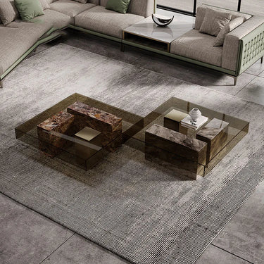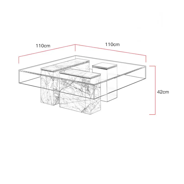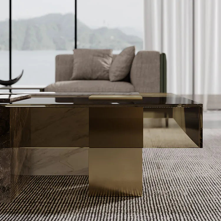 Architectural Square Tempered Glass and Marble Commercial Coffee Table