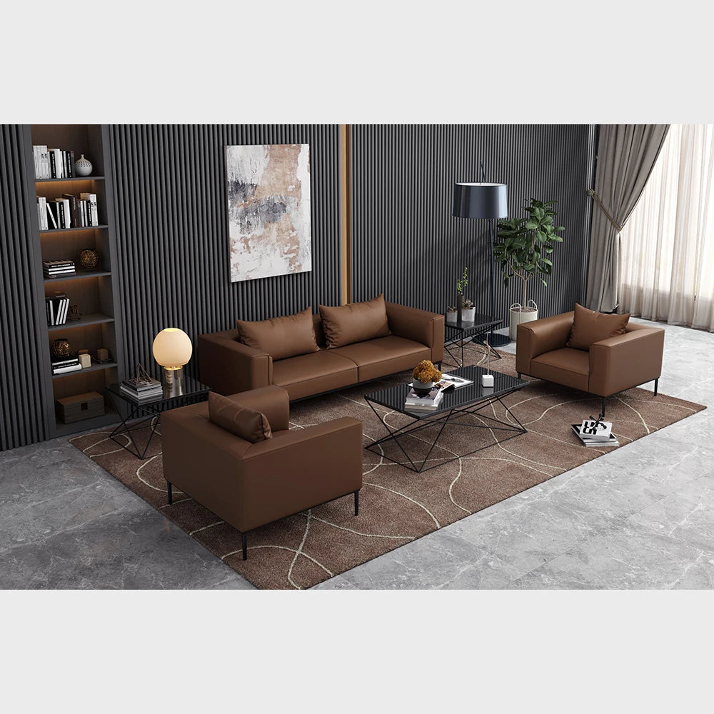 Home Architectural Three-Seat Synthetic Leather Commercial Reception Sofa Unit