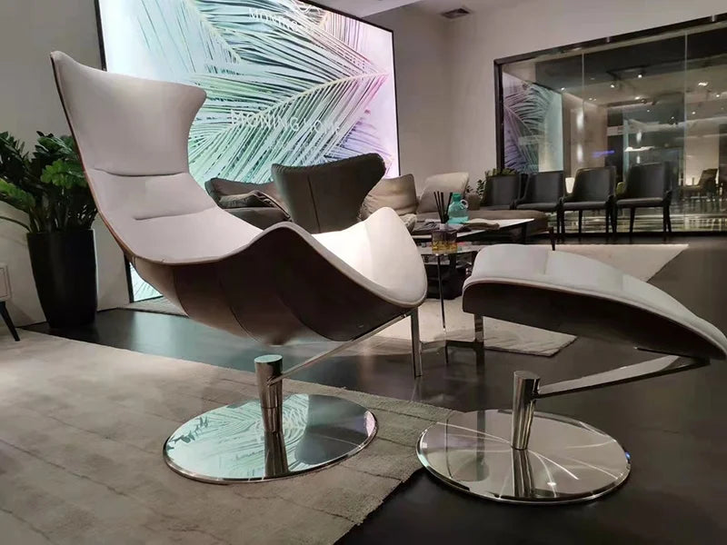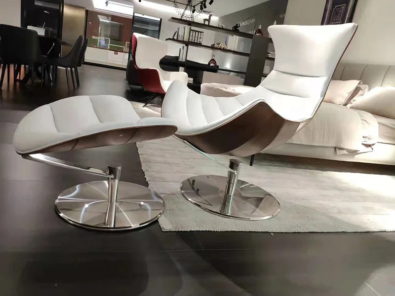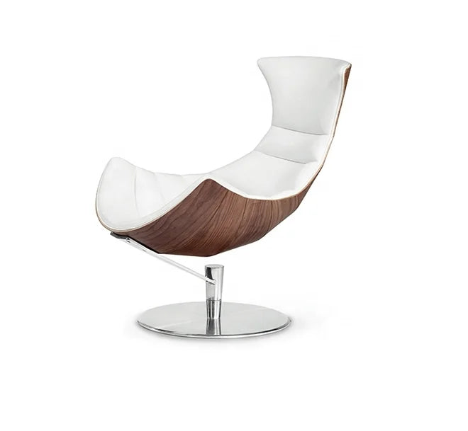 This project-grade furniture solution is engineered for high-end residential furniture applications and sophisticated hospitality and retail environments. Featuring premium microfiber leather upholstery and a precision-crafted wood veneer shell, this lounge chair provides exceptional durability for large-scale commercial projects. The stainless steel revolving base ensures stability and longevity in demanding retail fit-out furniture installations where performance is paramount. Custom commercial joinery capabilities allow for seamless integration into diverse architectural specifications, meeting the rigorous standards of modern commercial furniture fit-outs.