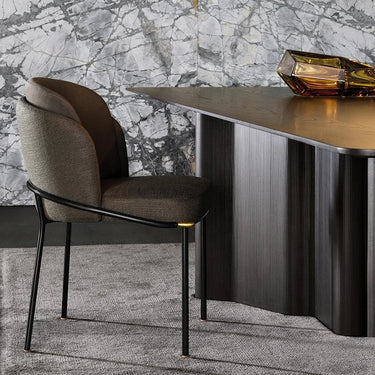 Architectural Velvet Dining Chair with Polished Stainless Steel Frame