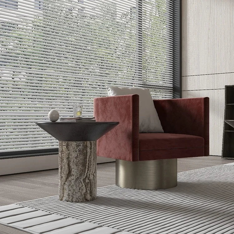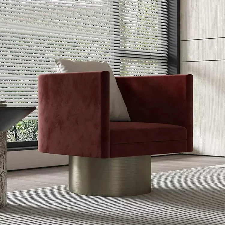 Home Architectural Velvet Upholstered Armchair with Sculpted Stainless Steel Base