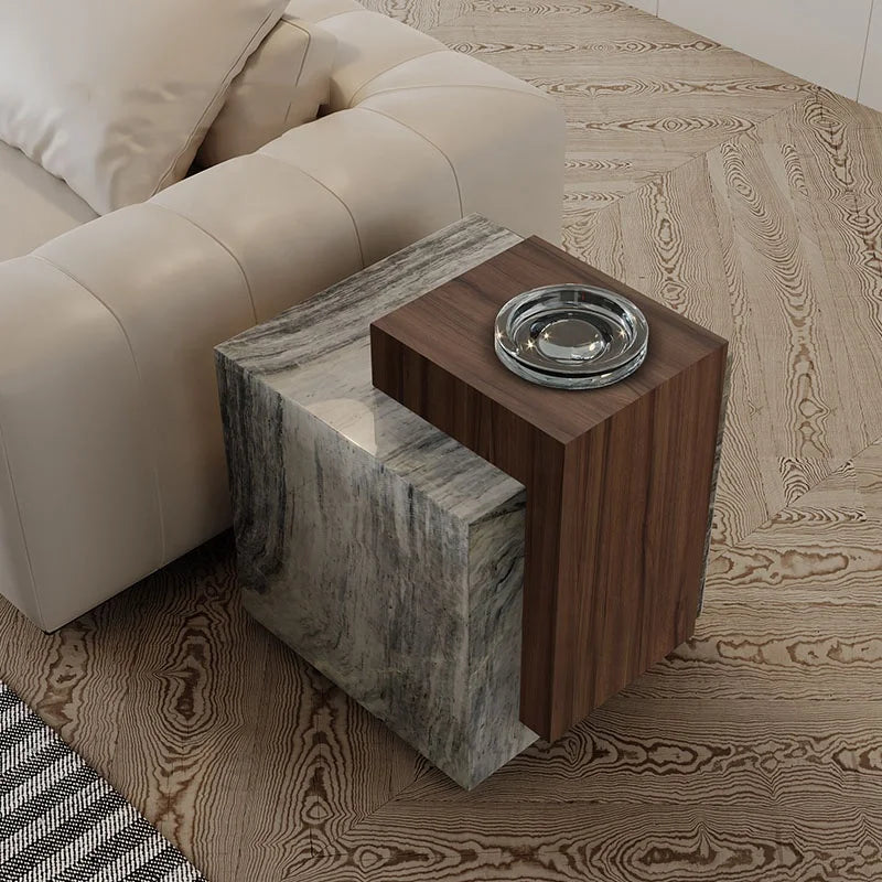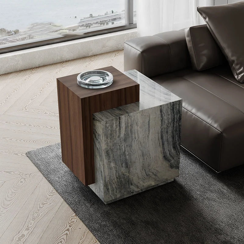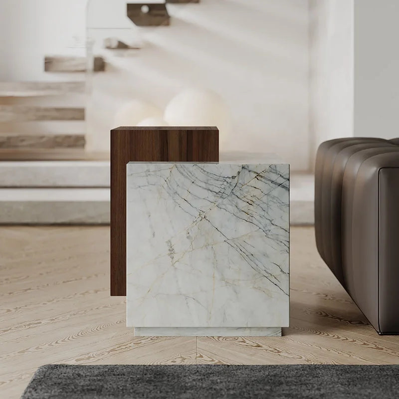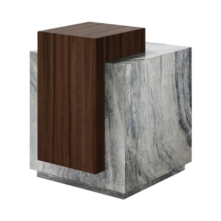 Contemporary Natural Marble and Wood Commercial Side Table Display Unit