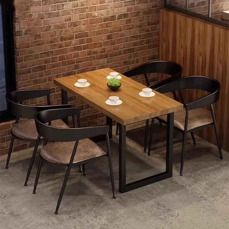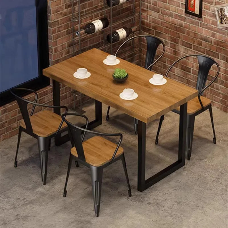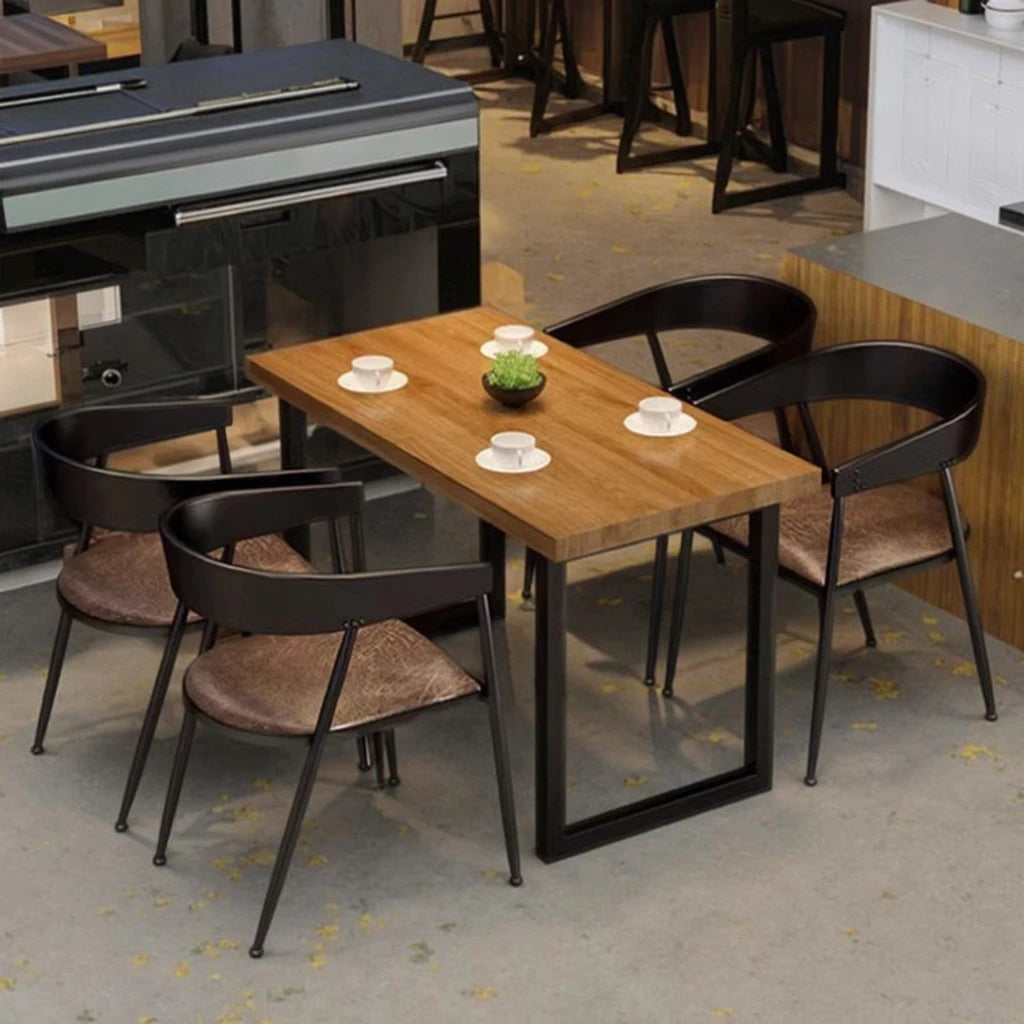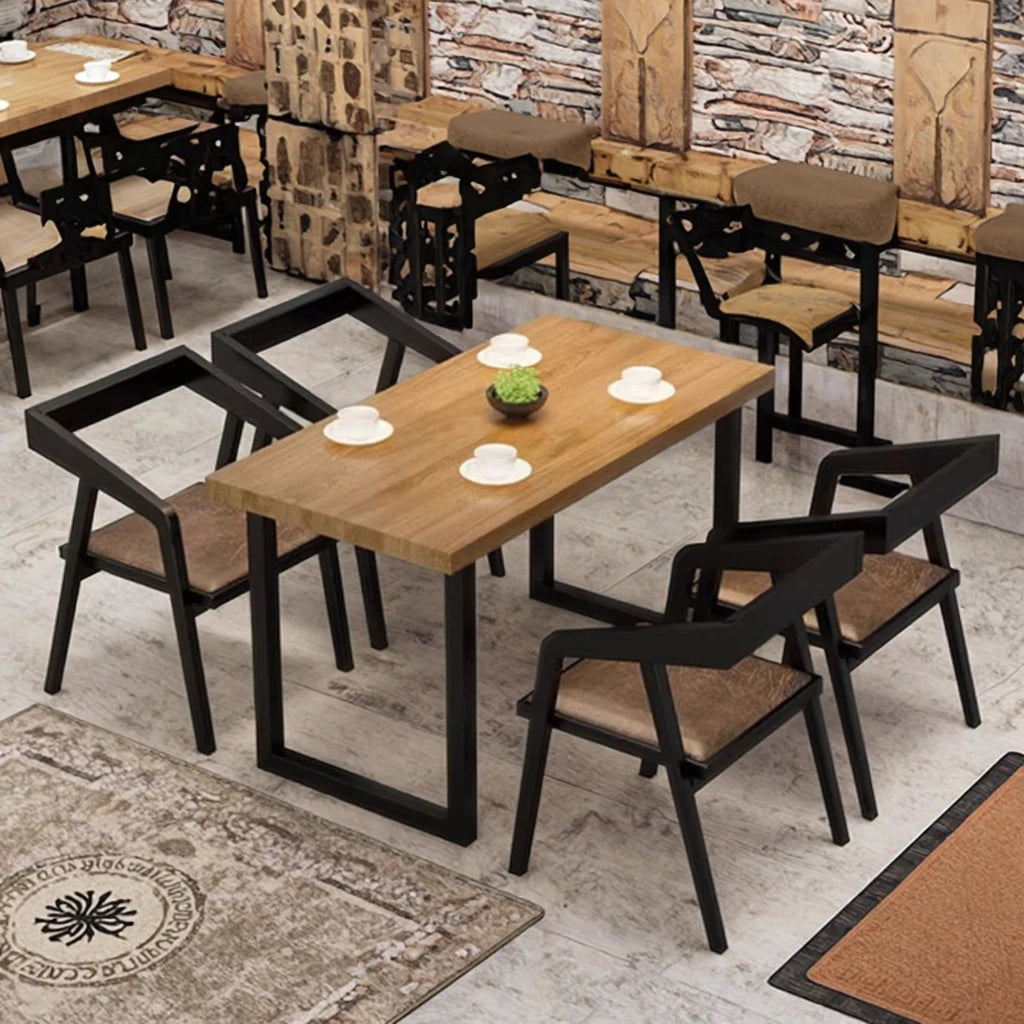 Industrial Solid Wood Restaurant Table and Custom Metal Seating Set