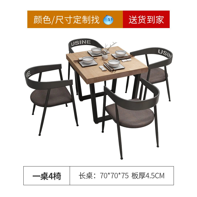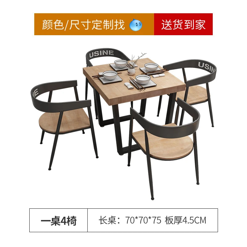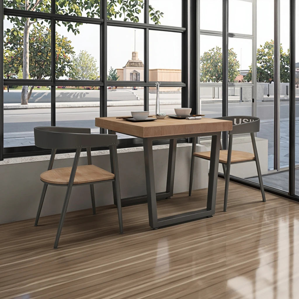 Industrial Square Dining Table and Integrated Seating for Commercial Fit-Outs