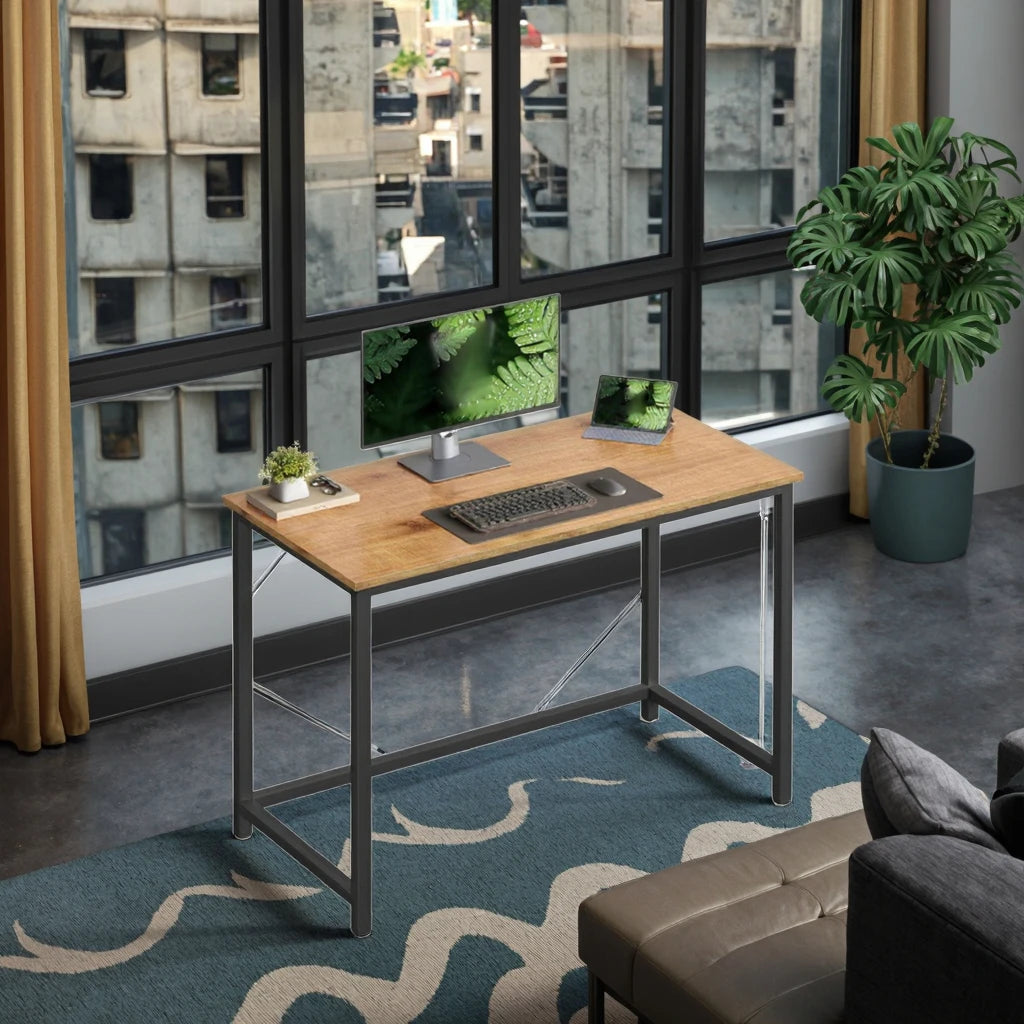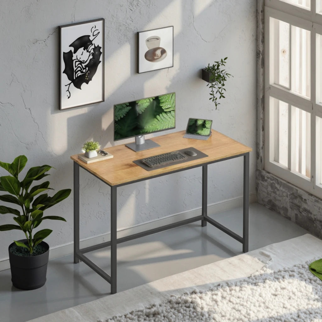Home Industrial Timber Workstation with Structural Metal Frame for Commercial Fit-outs