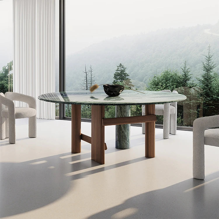 Material Natural Green Marble and Premium Solid Wood