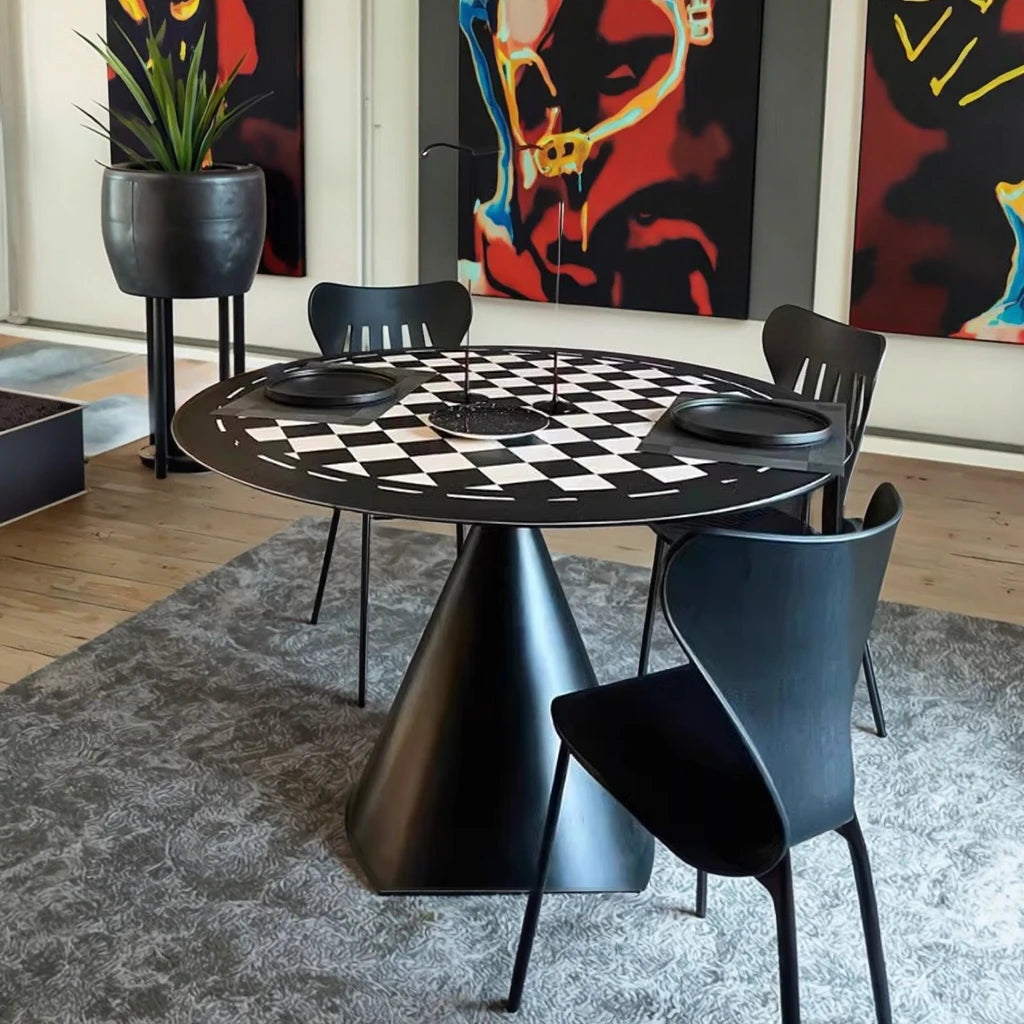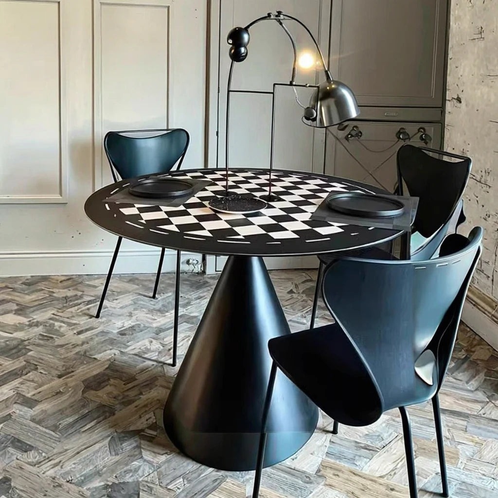 Minimalist Matte Stone Dining Table with Architectural Profile Metal Seating