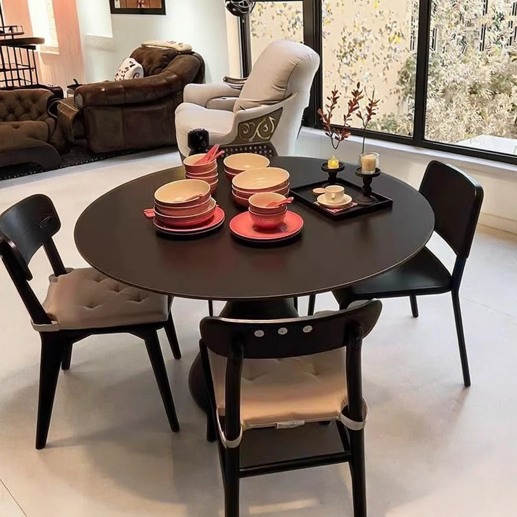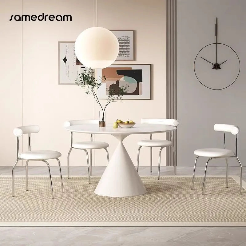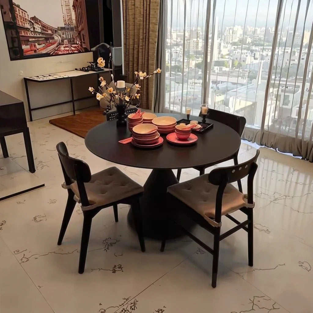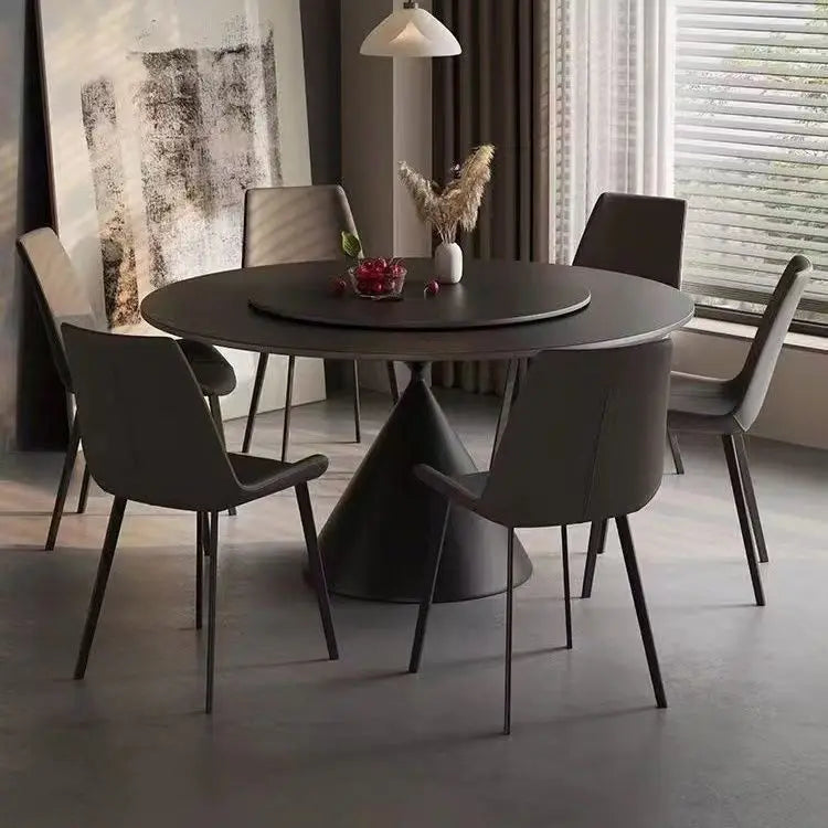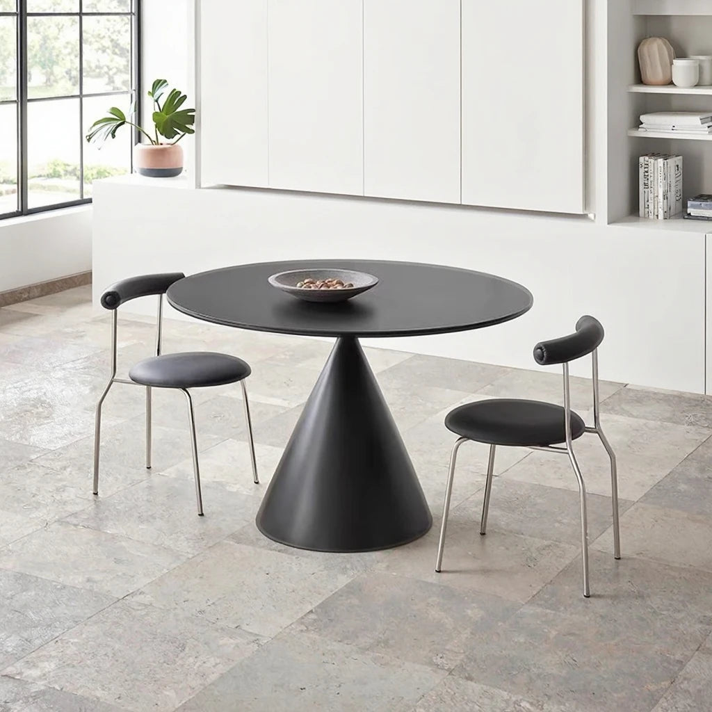 Home Minimalist Matte Stone Dining Table with Architectural Profile Metal Seating