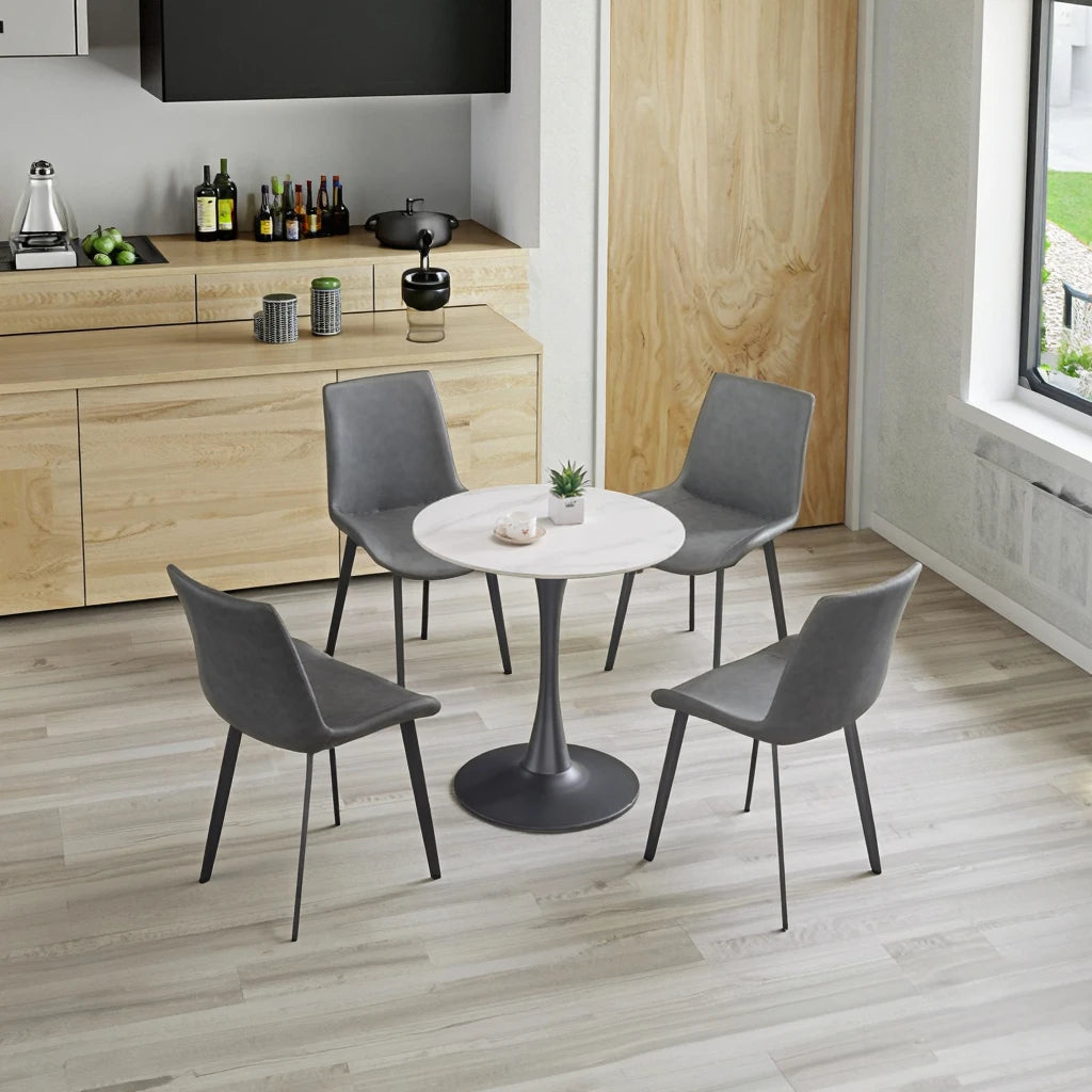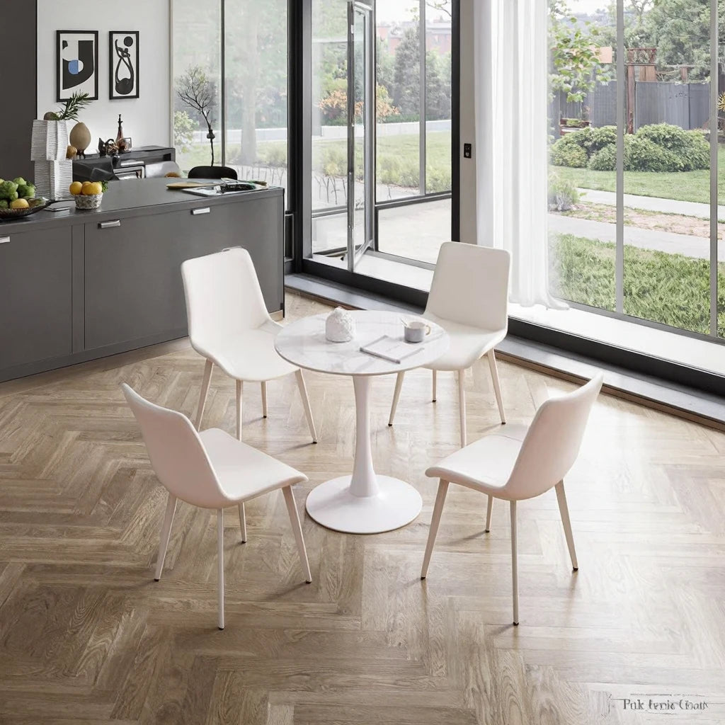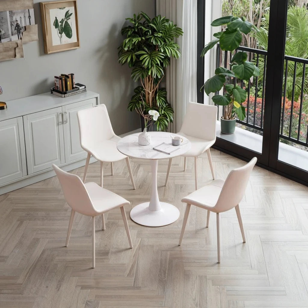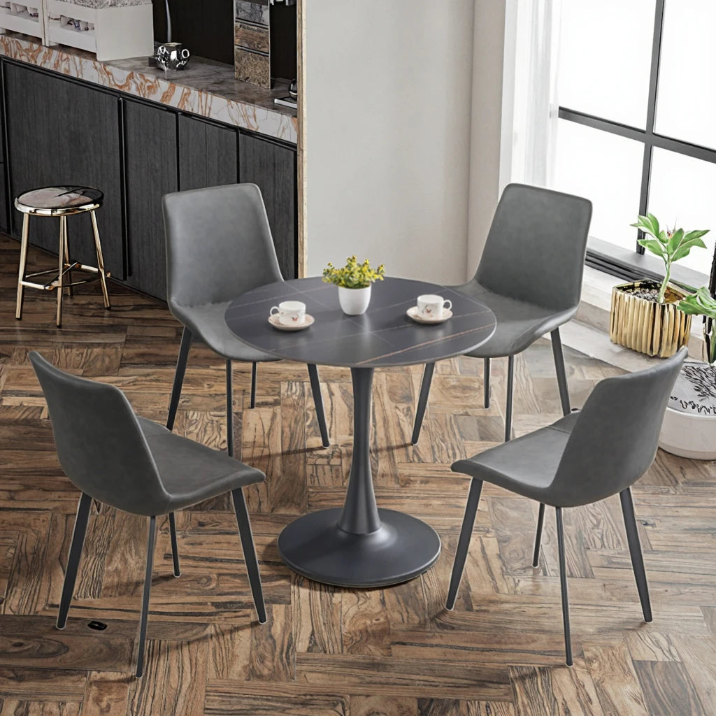 Home Modern Architectural Round Solid Wood and Metal Project Grade Dining Suite