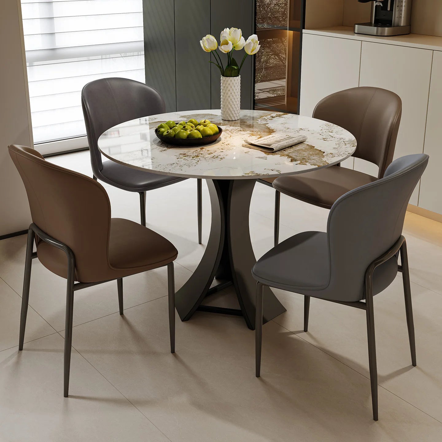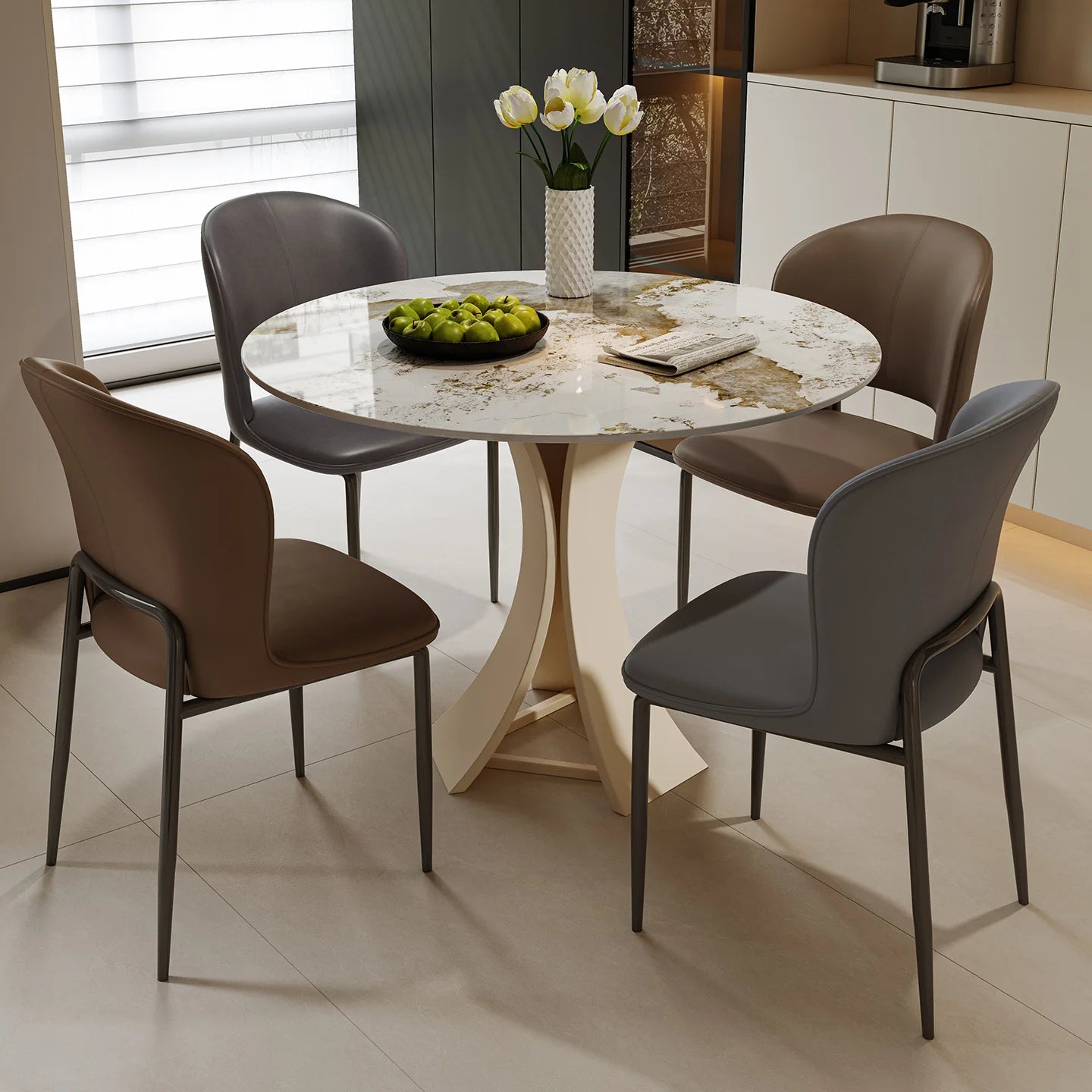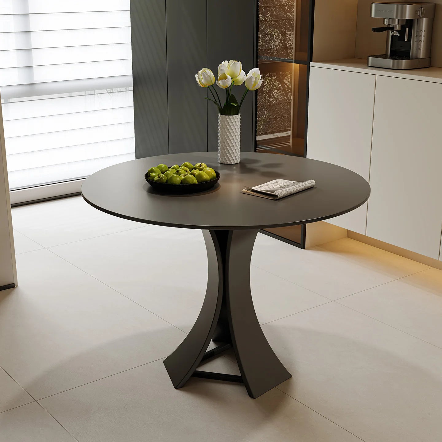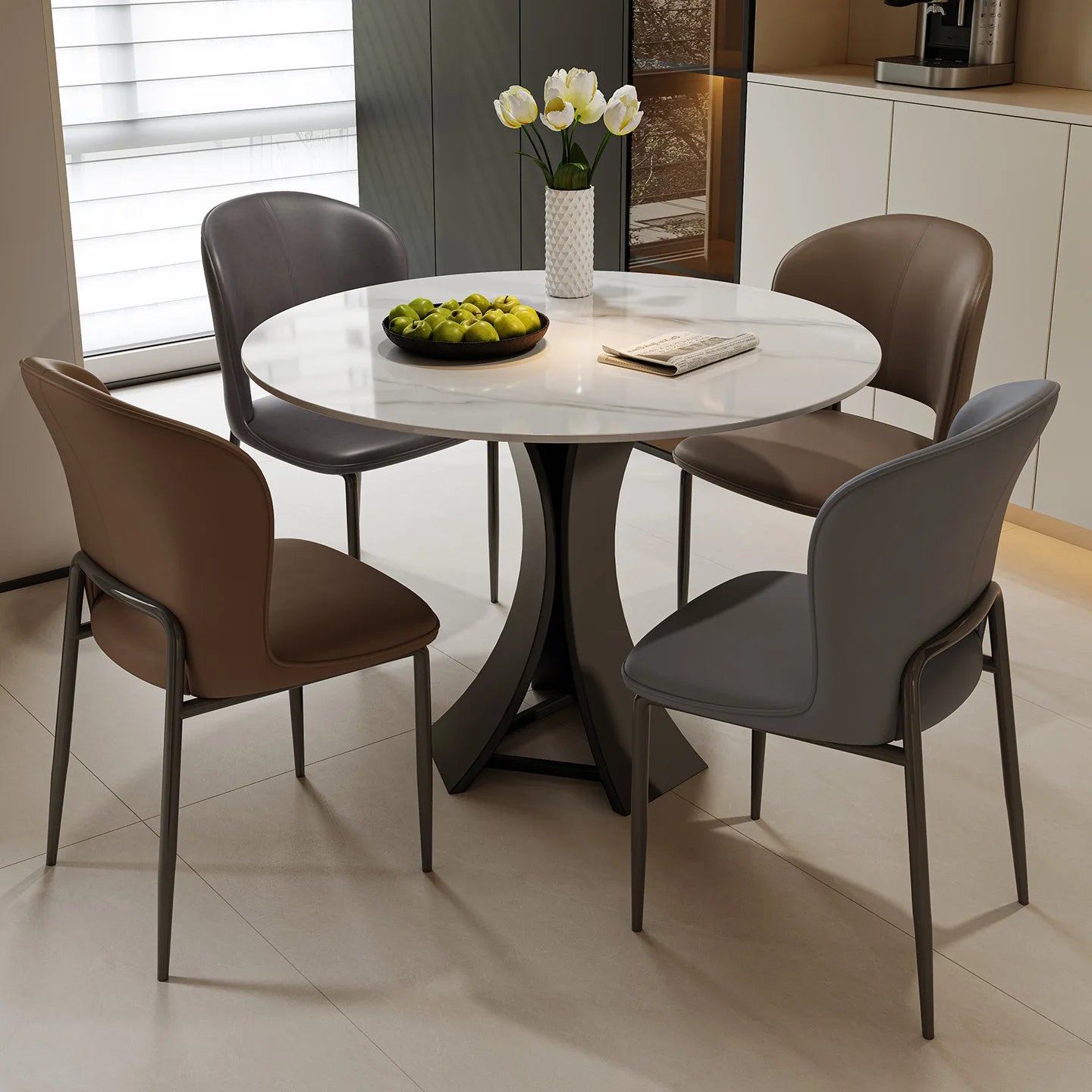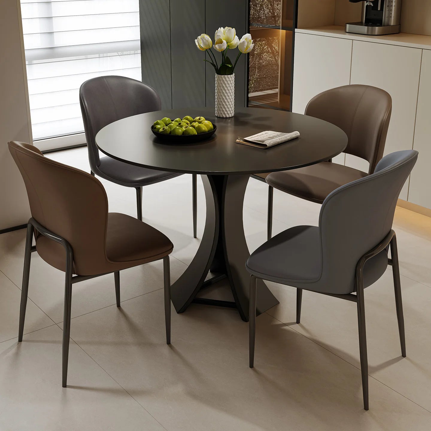 Home Modern Minimalist Round Commercial Grade Dining Table and Seating Set