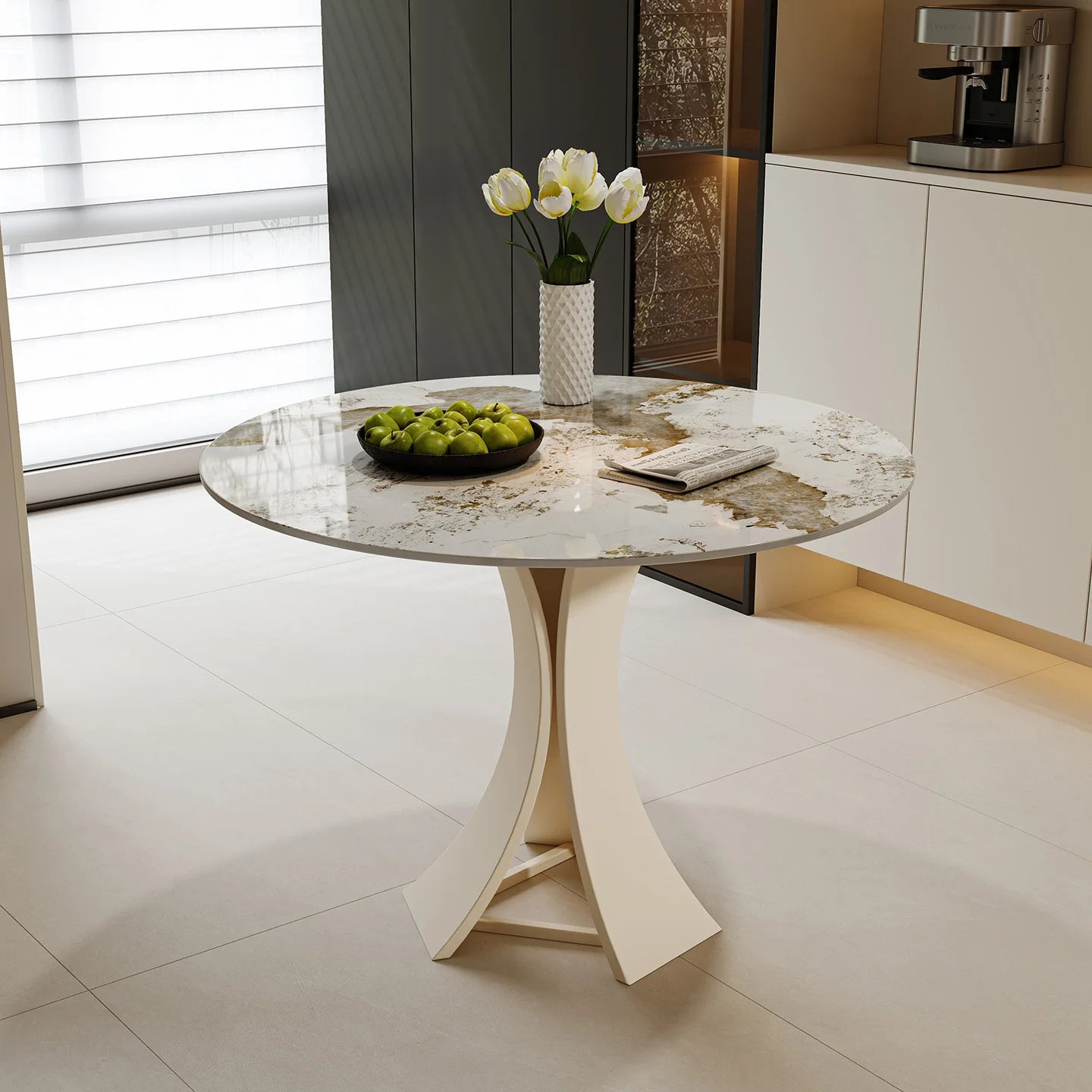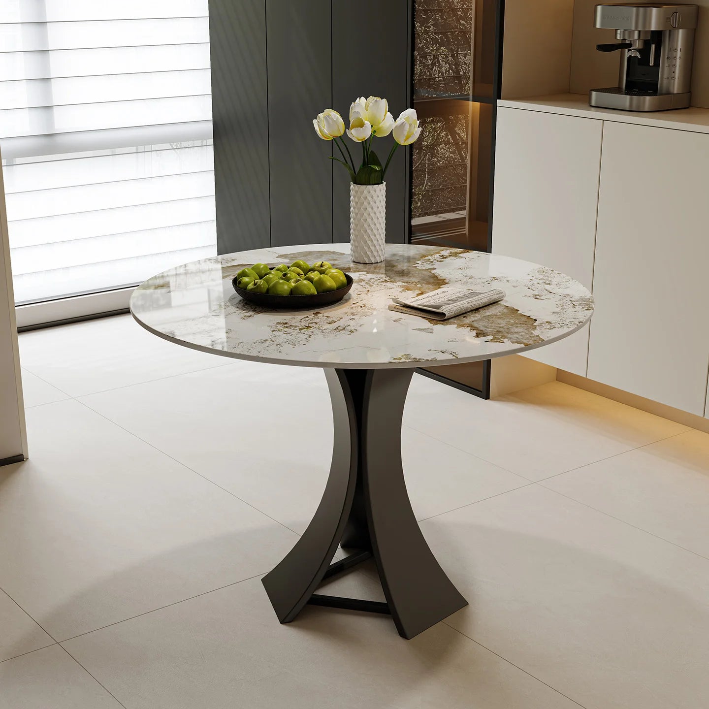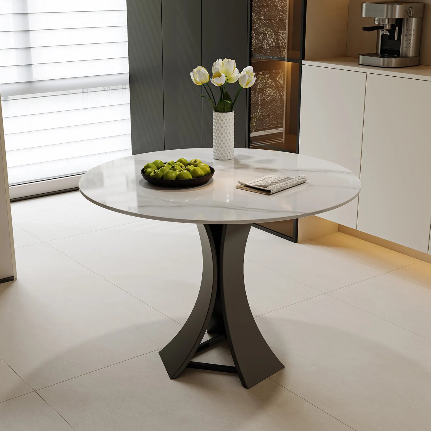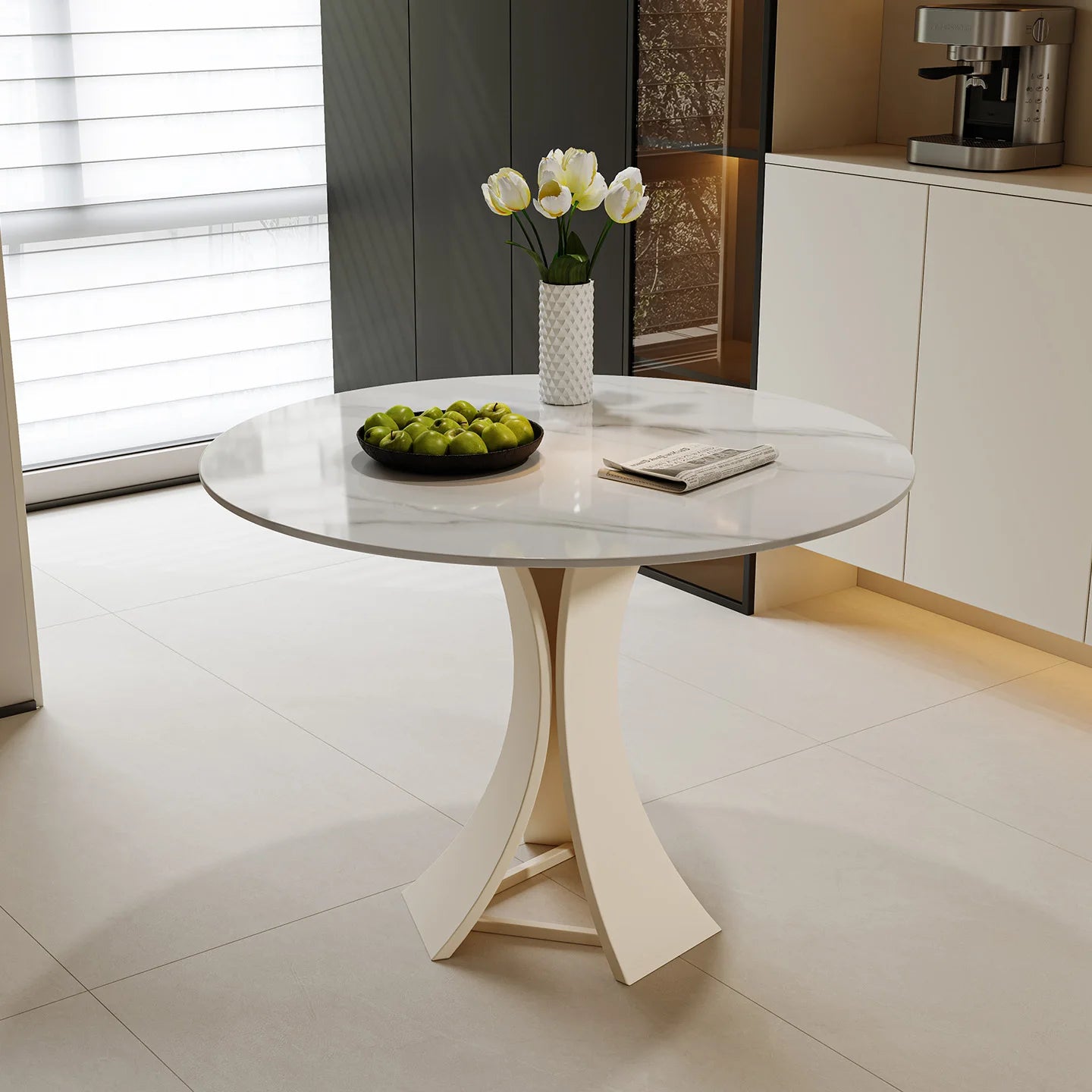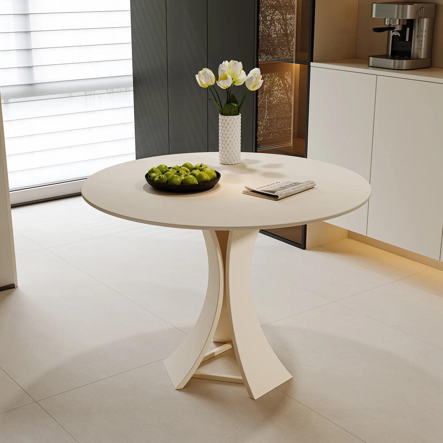 Home Modern Minimalist Round Commercial Grade Dining Table and Seating Set