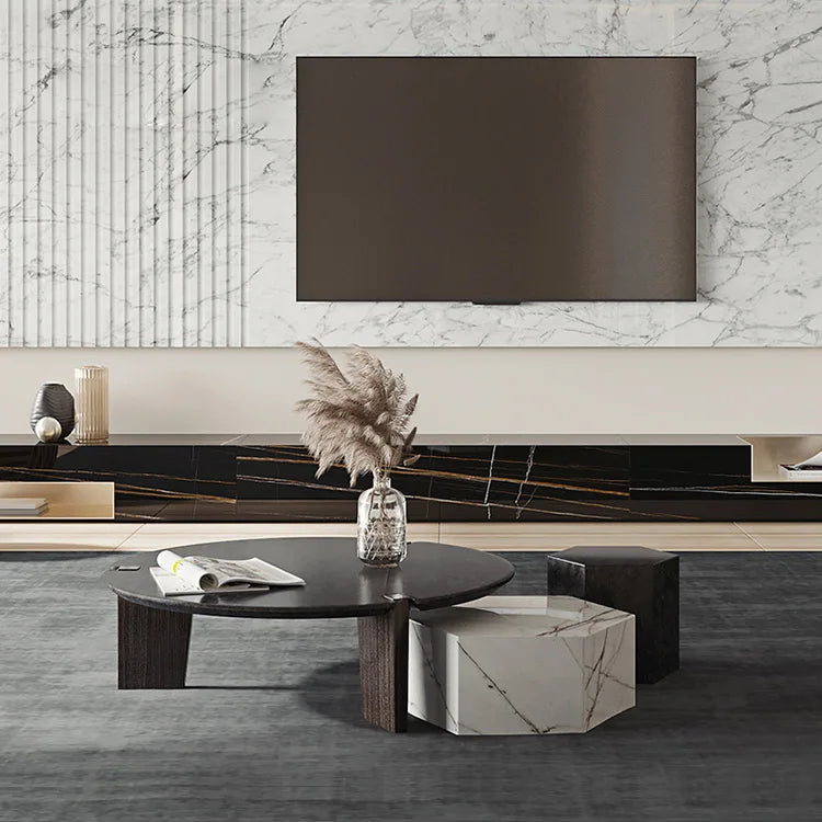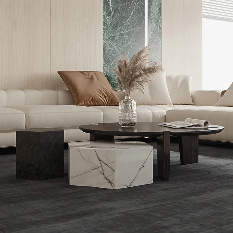 Premium Circular Natural Marble Coffee Table for Large Scale Commercial Projects