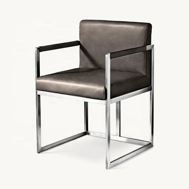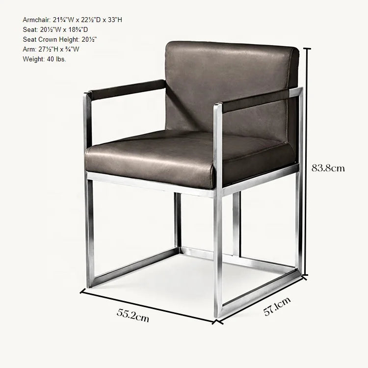Home Premium Genuine Leather Commercial Armchair with Polished Stainless Steel Frame