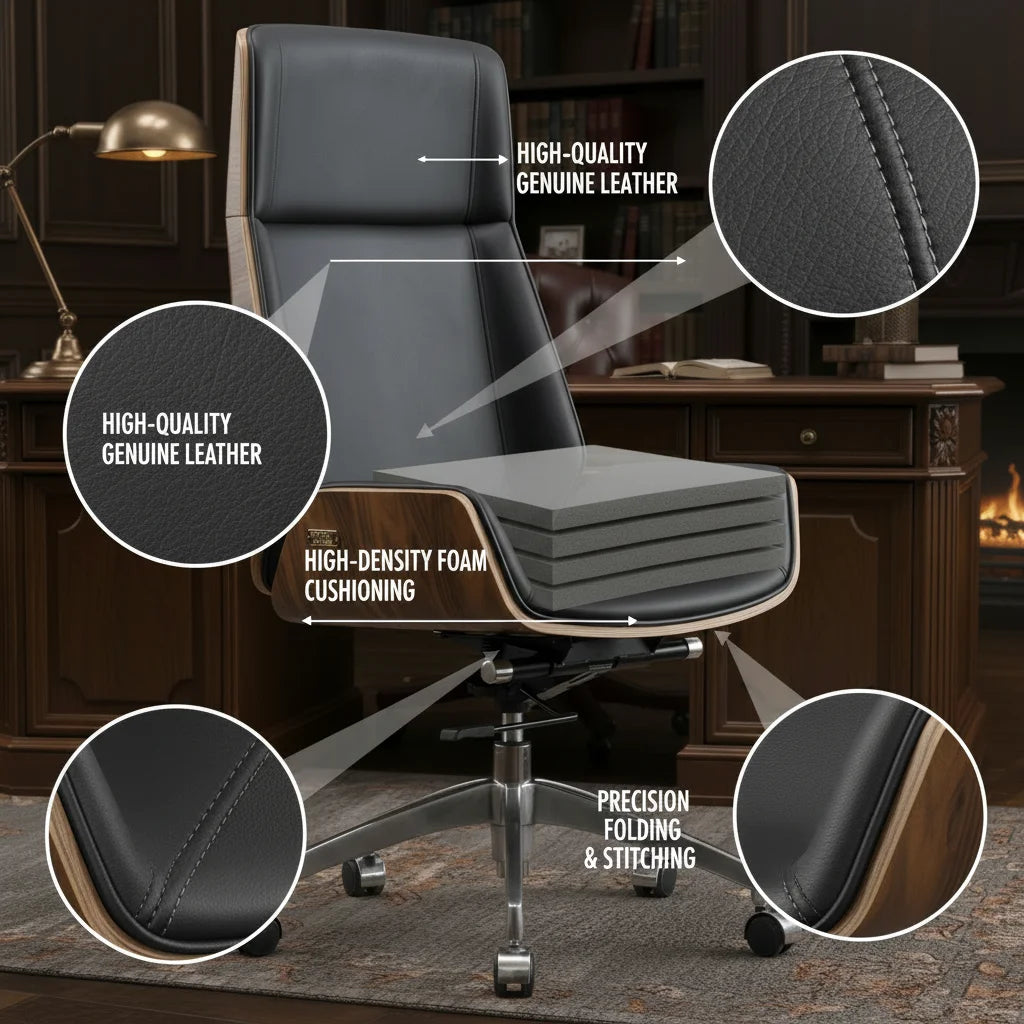 Premium High Back Genuine Leather Executive Swivel Commercial Seating