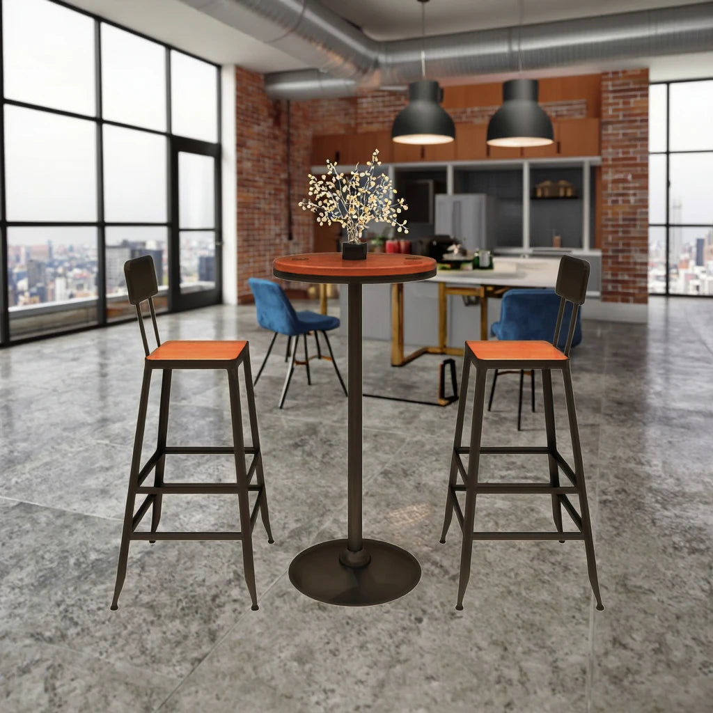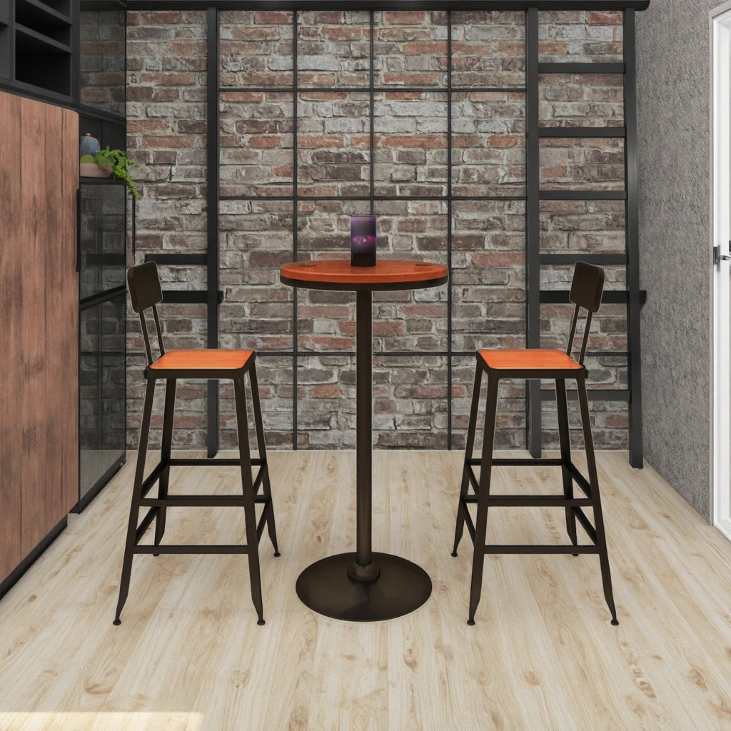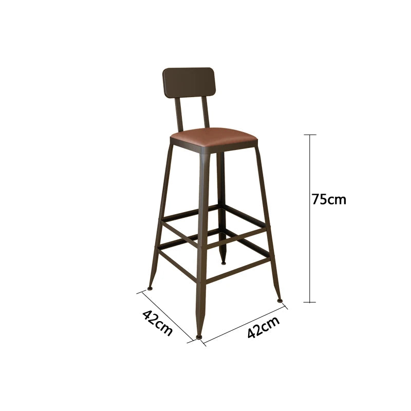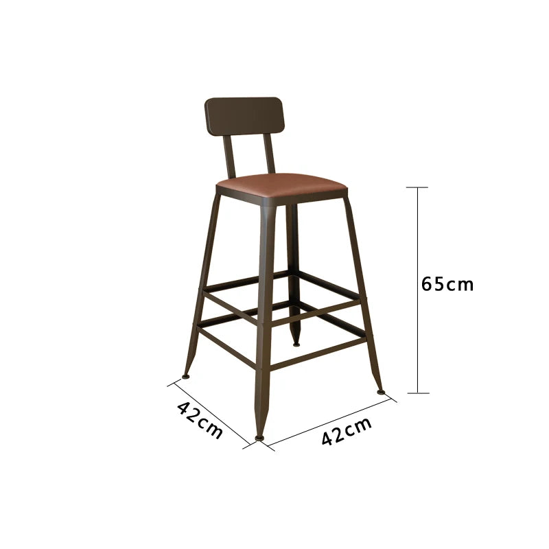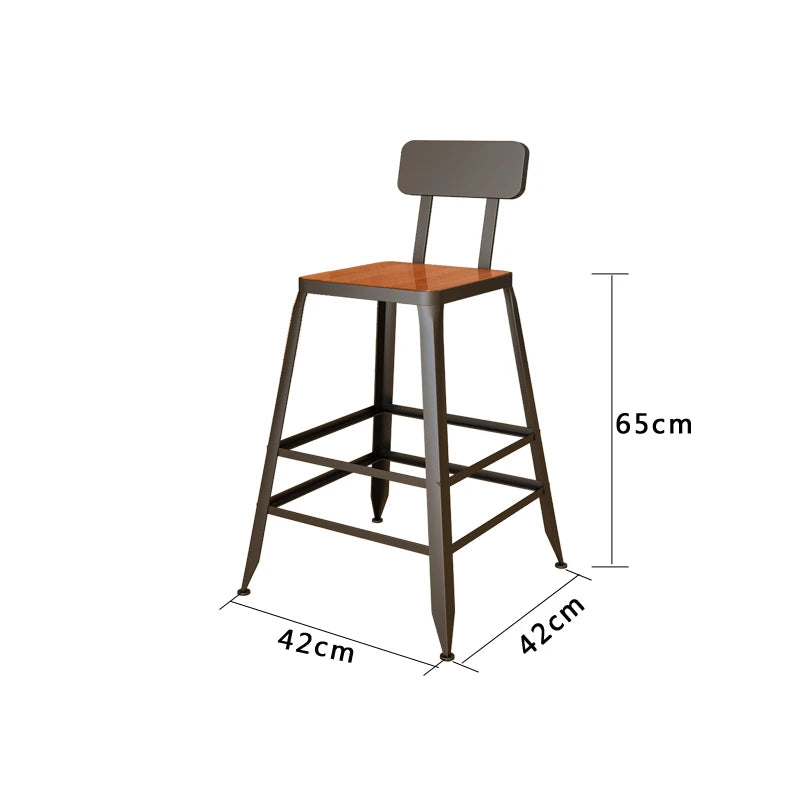 Home Premium Industrial Solid Wood Bar Stool with Architectural Iron Backrest