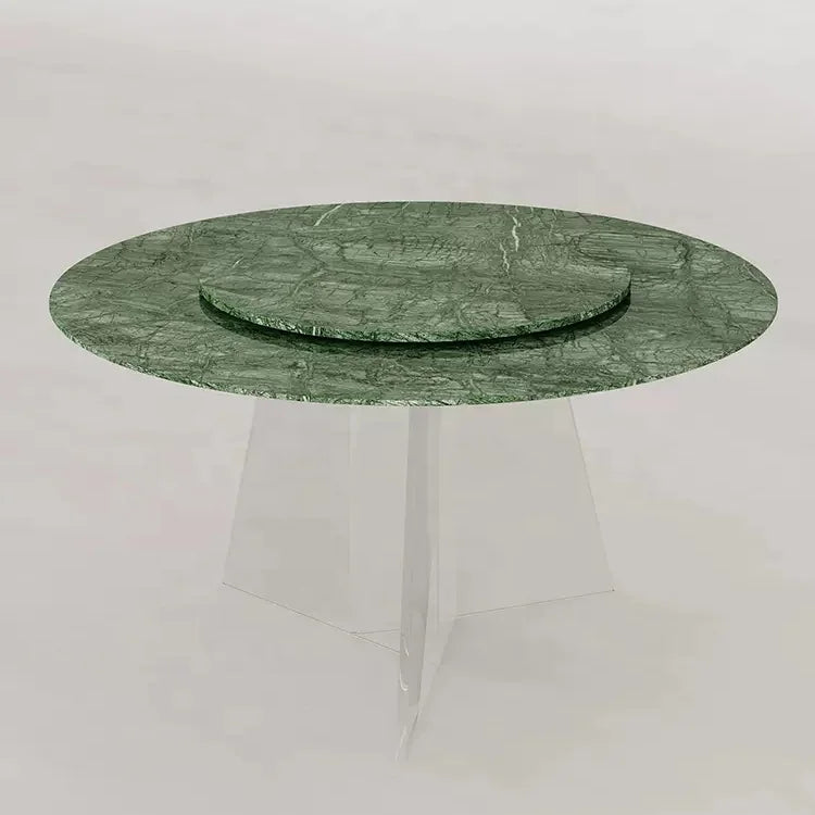 This project-grade furniture solution features a natural jade green marble top and architectural crystal-grade acrylic supports, engineered specifically for high-end hospitality and retail environments. Designed for durability and scalability in large-scale commercial projects, the integrated rotating mechanism provides functional versatility for premium dining or retail fit-out furniture applications. Our custom commercial joinery capabilities ensure each unit meets the rigorous compliance and aesthetic standards required by architects and interior designers for high-end residential furniture installations. This sophisticated piece represents a fusion of natural stone craftsmanship and modern material science, offering a robust yet refined centerpiece for any luxury commercial interior.