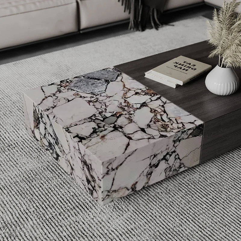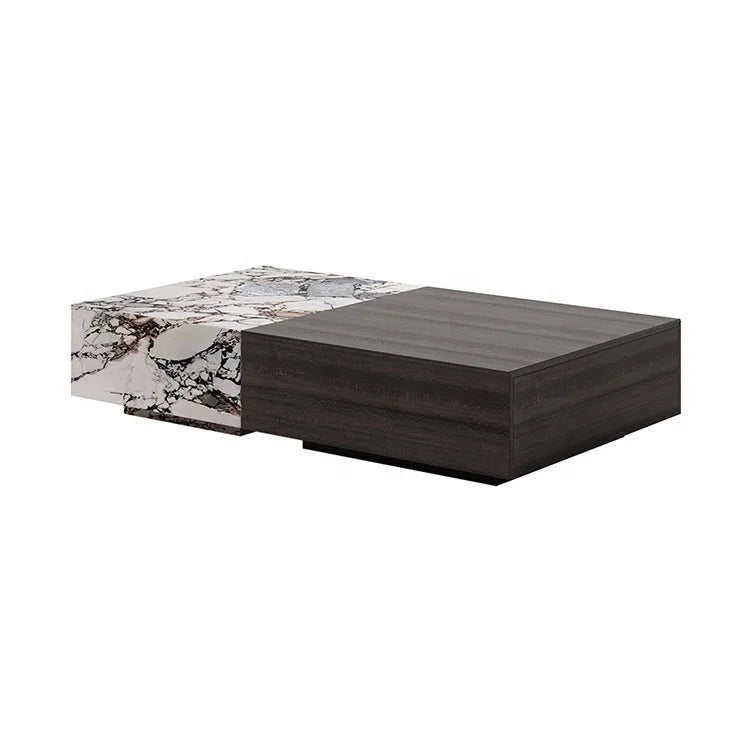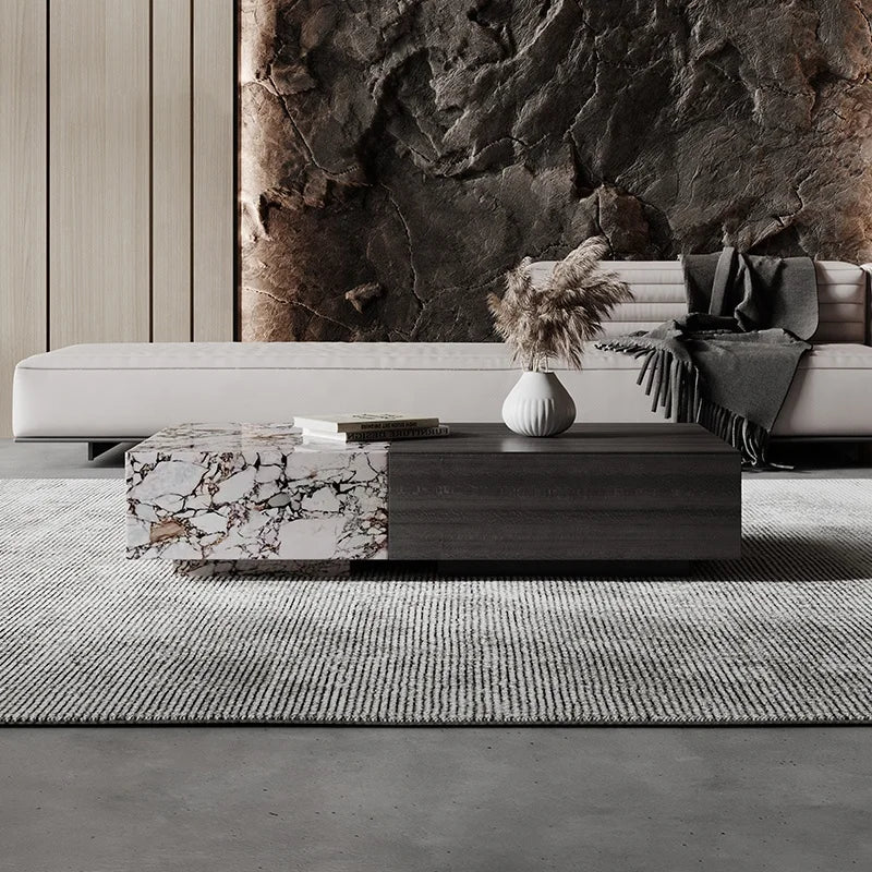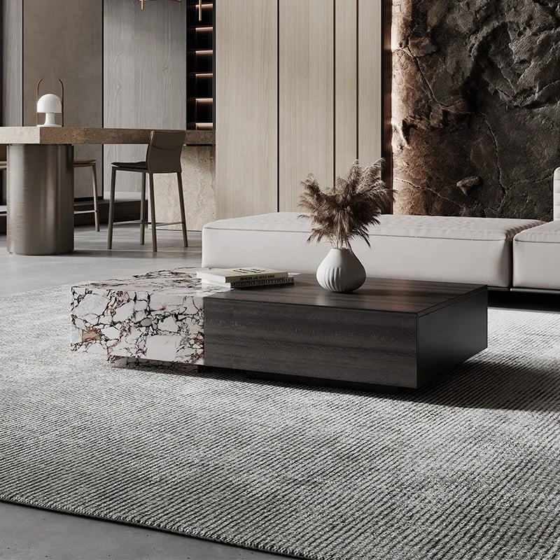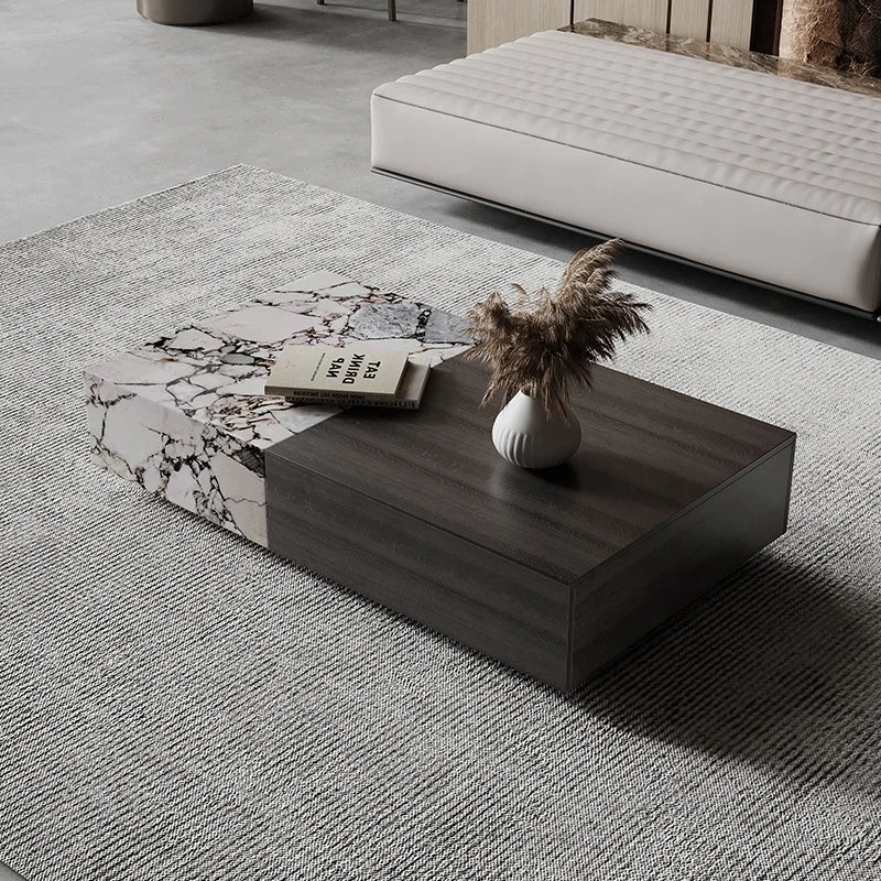 Premium Natural Marble and Solid Wood Architectural Coffee Table with Storage
