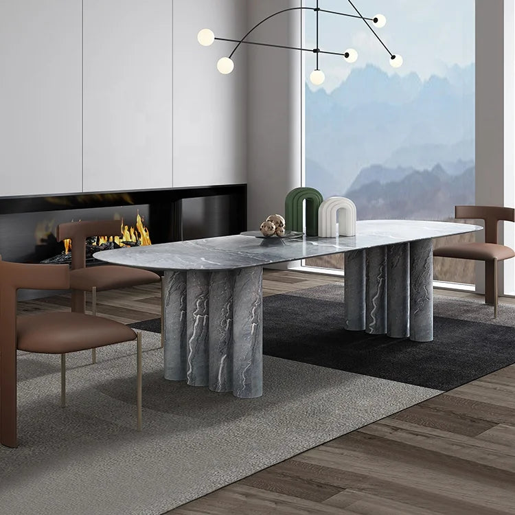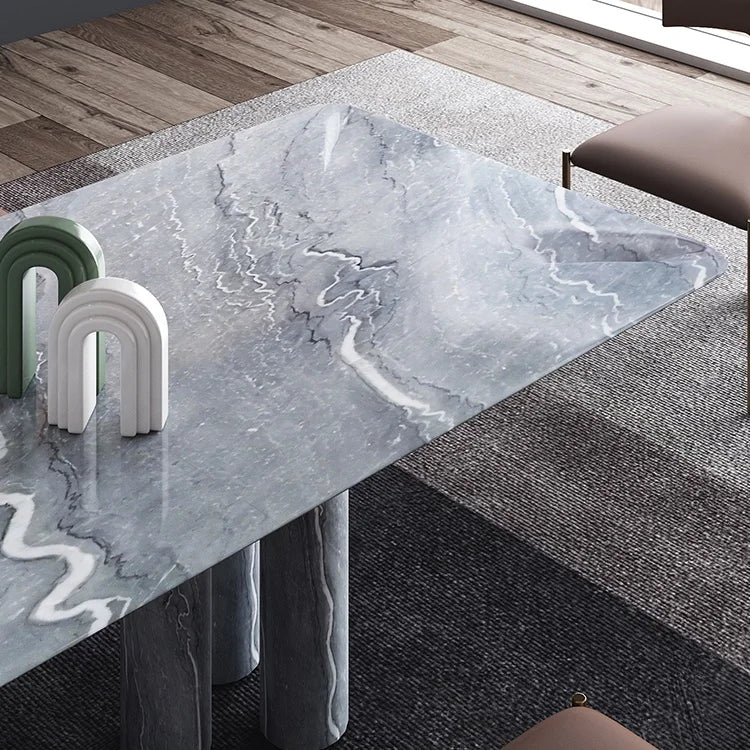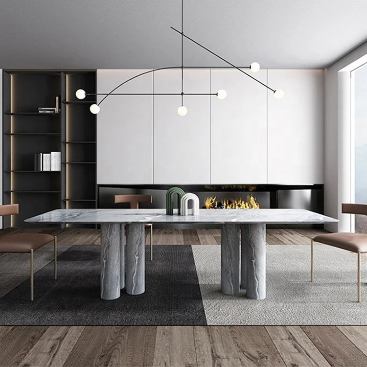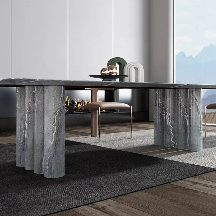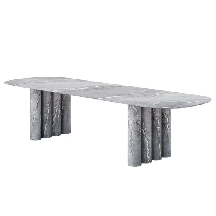 Premium Natural Marble Dining Table with Architectural Cylinder Base Support