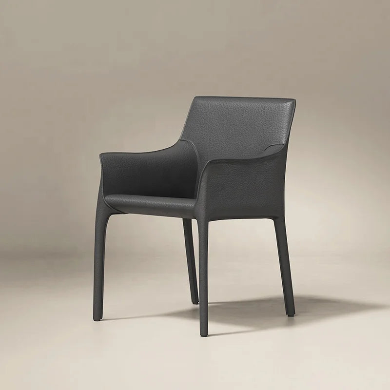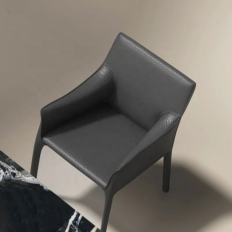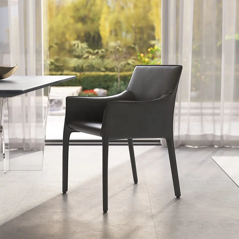 Premium Saddle Leather Commercial Dining Chair with Architectural Metal Legs